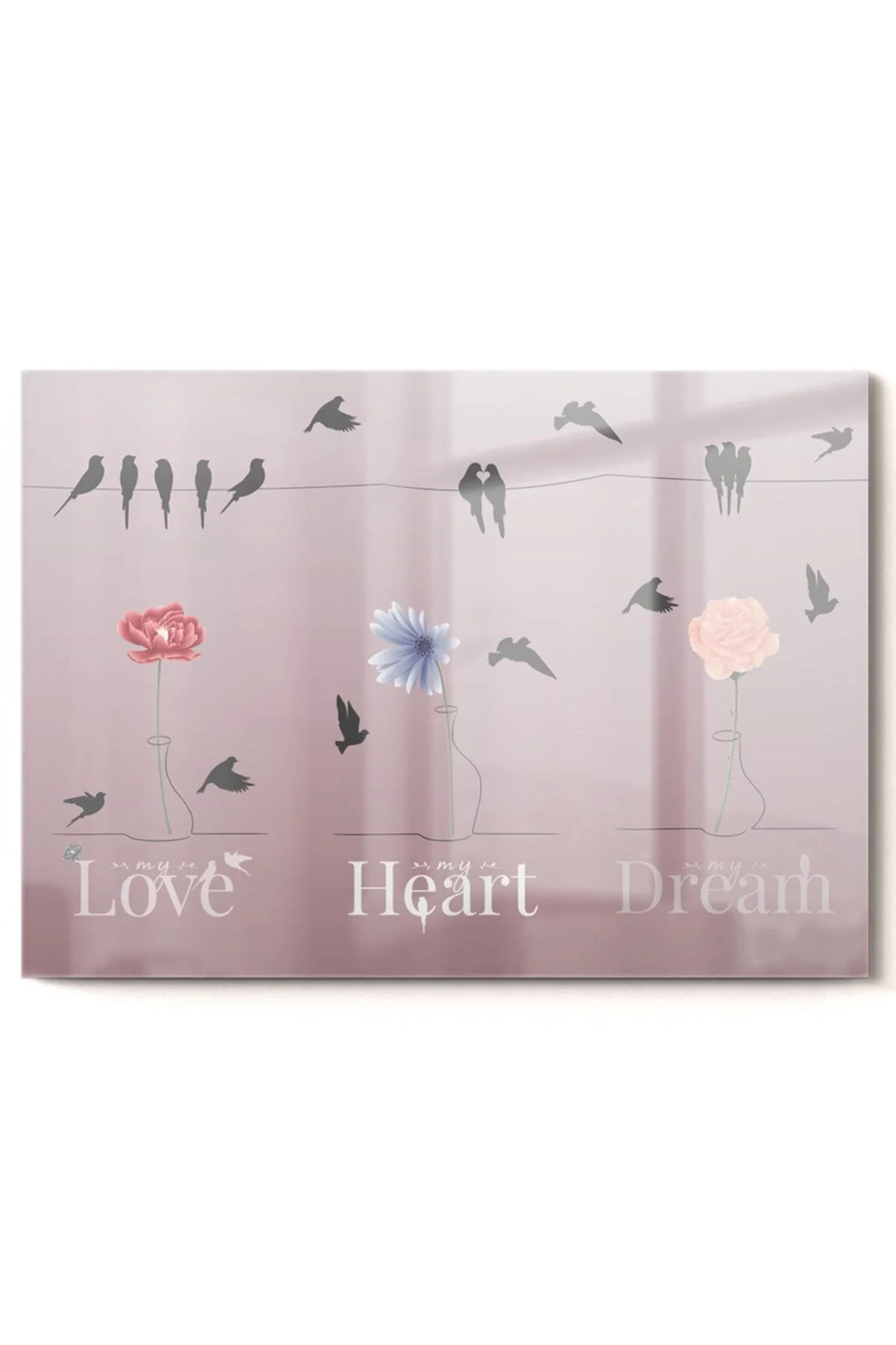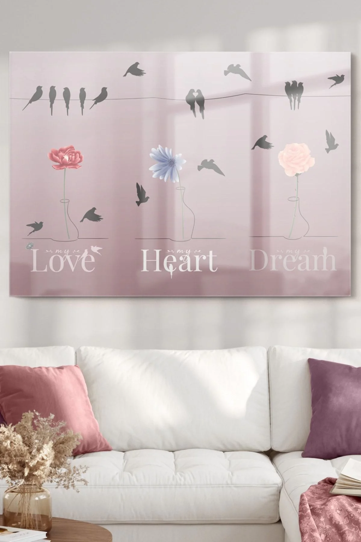 Flowers And Birds Love Heart Dream| Animal Themed Glass Painting | 50x70cm