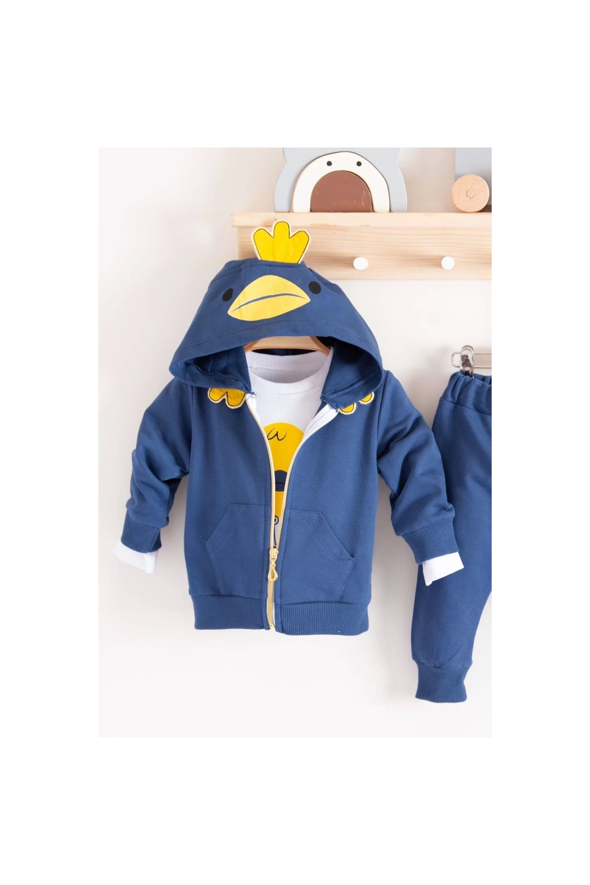 Chick Patterned Hooded 3-Piece Baby Boy Set