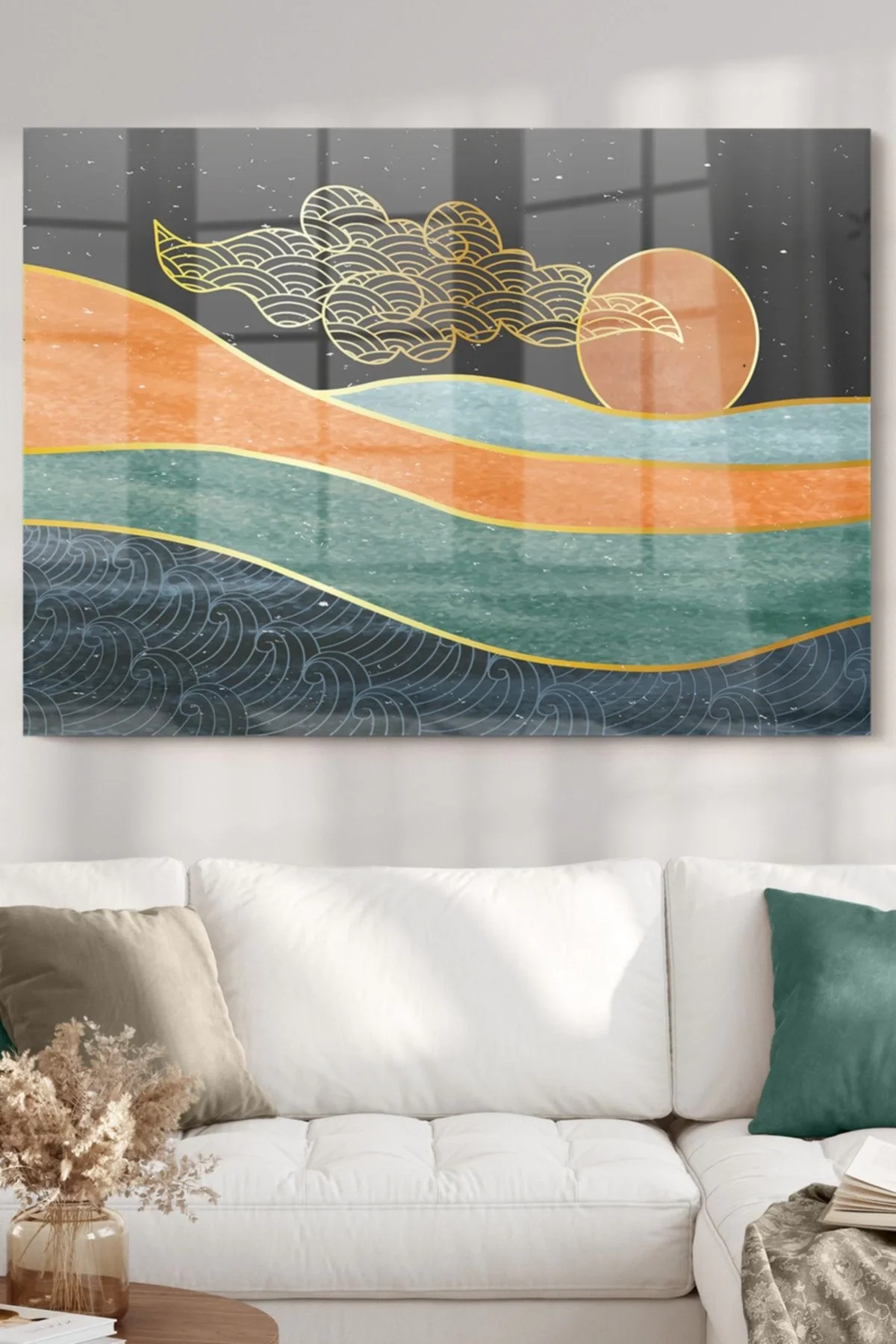 Sun And Sea Abstract Work | Abstract Themed Glass Painting | 50x70cm