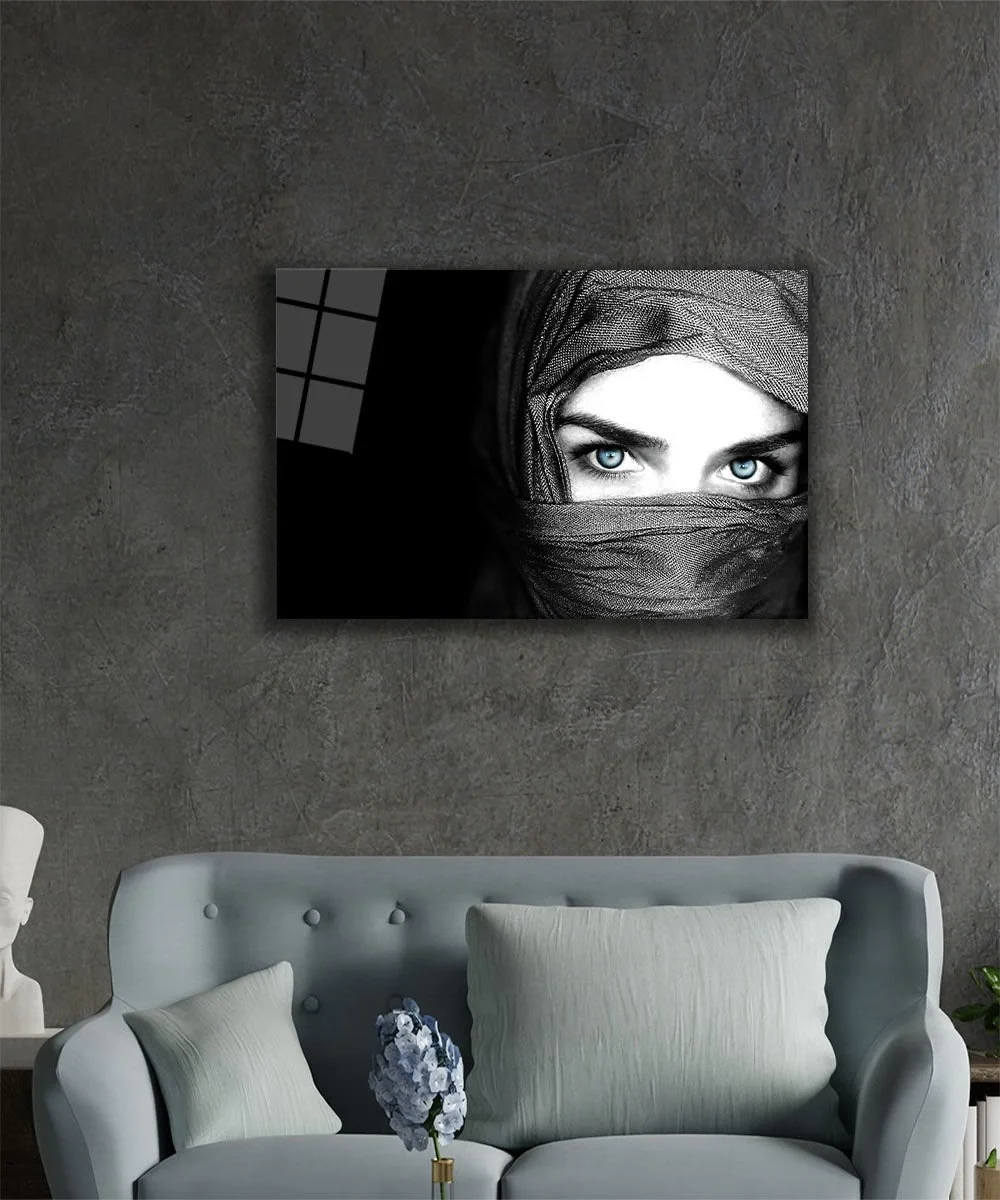 TEKNOO- Veiled Blue Eyed Woman Glass Painting Veiled Blue Eyed