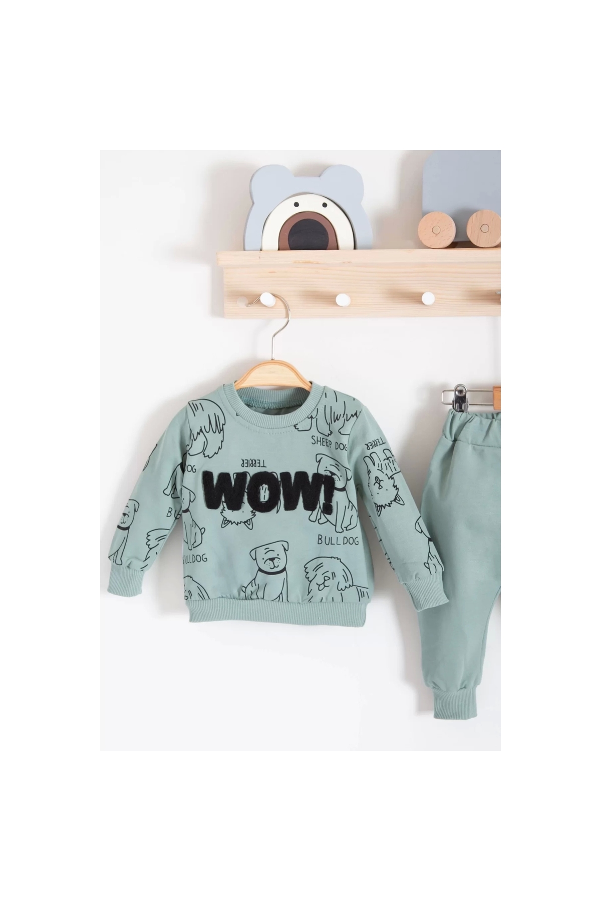 Wow Embroidered Cotton 2-Piece Baby Boy Set. The product is produced in Turkey from skin-friendly fabric.