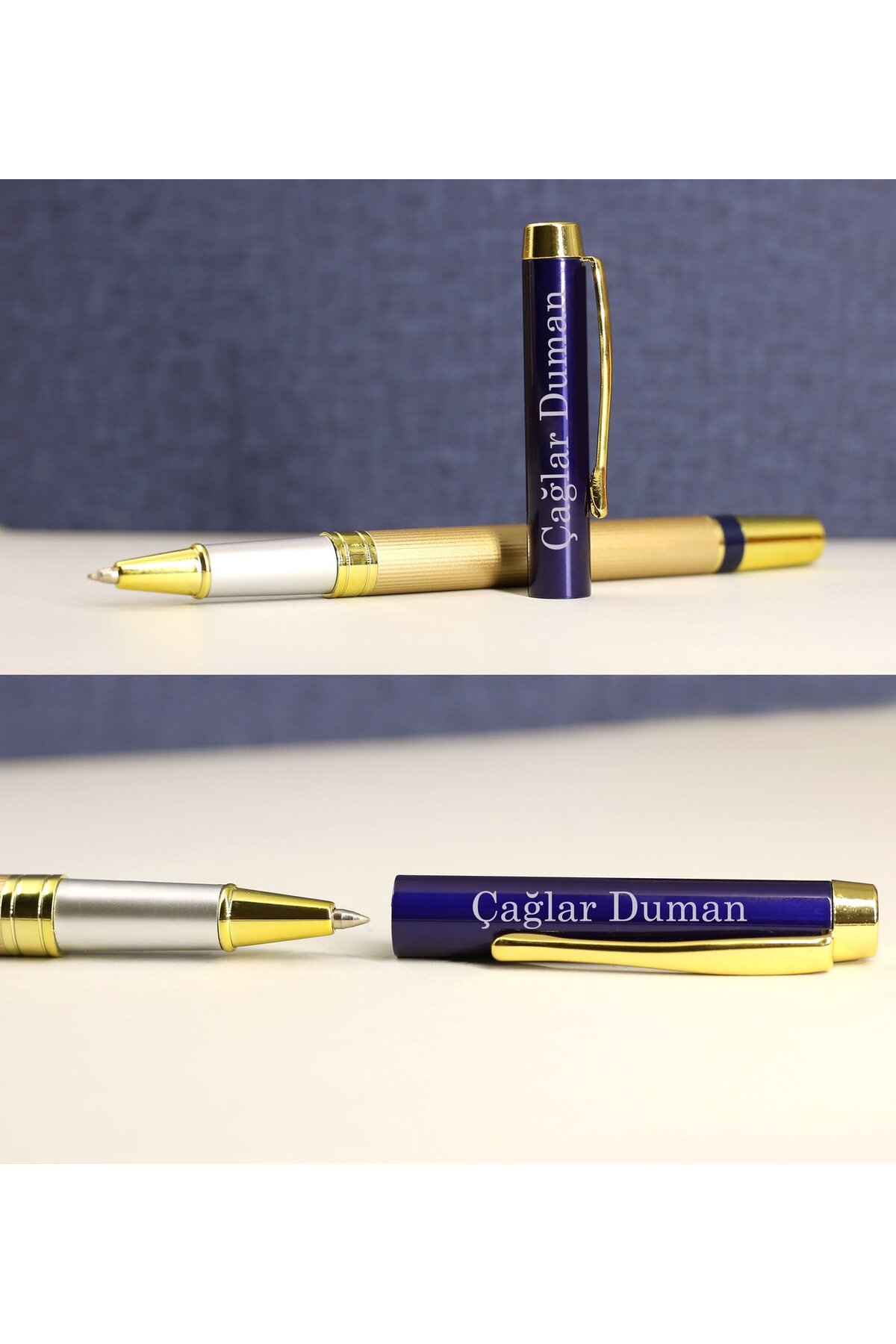 PRODUCT CONTENT Personalized Dark Blue Notebook *It is personalized. It is made by laser engraving method. The writing is not erased or deformed in any way. *It consists of 192 pages. *Pages are lined. *There is a safety and pen rubber band. *Size: 13 X 21 cm. Personalized Metal Rollerball Pen *It is personalized. It is made by laser engraving method. The writing is not erased or deformed in any way. *It is written in blue color. *Sent in a pencil case. *Size: 12 cm. Mug Cup *The matte mug, which will be the most beautiful detail on your table, will add a new dimension to the pleasure of drinking tea and coffee. This beautifully designed mug set, which allows you to enjoy your drinks and which you can gift, will make your loved ones very happy. *The color does not fade. It is easy to clean and does not contain germs. *It has a completely healthy and ecological material structure. *Size: 8.5 x 8.5 cm. Personalized Card Holder *It is personalized. It is made by laser engraving method. The text is not erased or deformed in any way. *Security has snaps. *It is artificial leather. *Size: 10 X 8 cm.