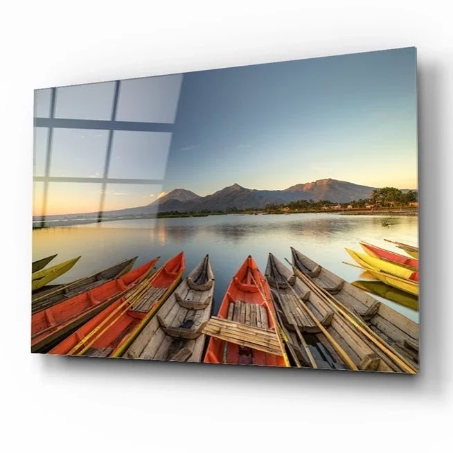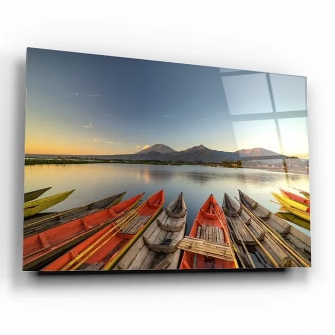 Colorful Boats Sunset Seascape Artistic Glass Painting