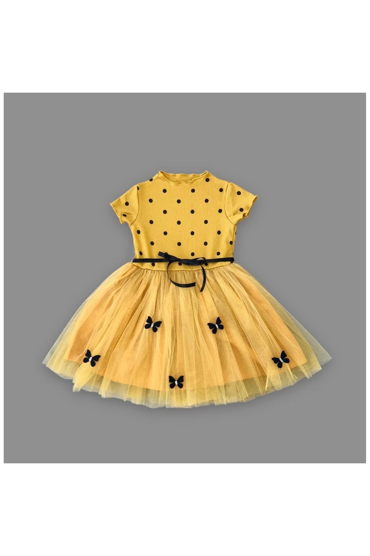 5-6-7 Years Old Polka Dot Butterfly Skirt Lined Girl's Dress