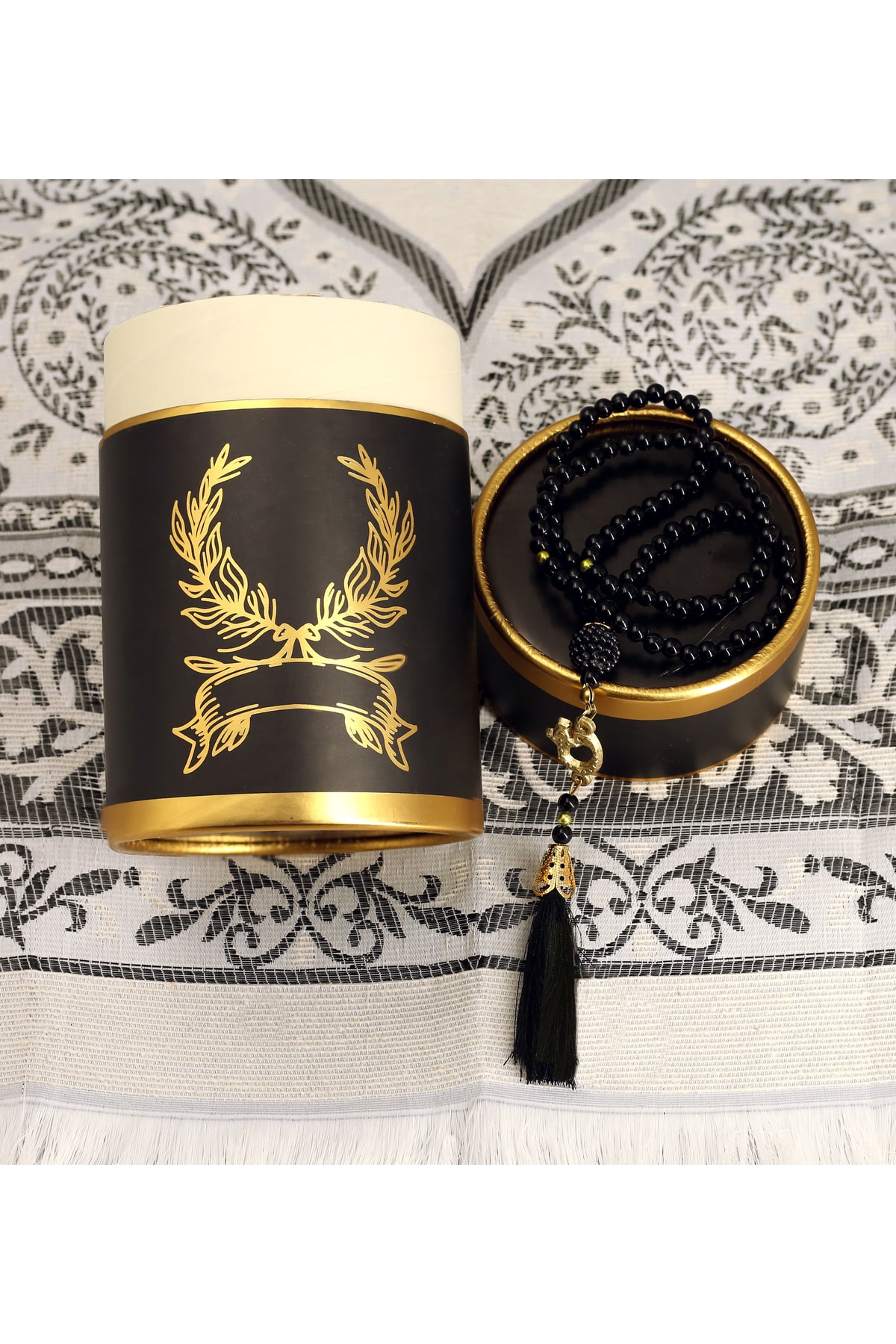 Glitter Detailed Black Shawl & Boxed Prayer Rug & Rosary & Zikirmatik & Floral Fragrance Roll-on Gift Set