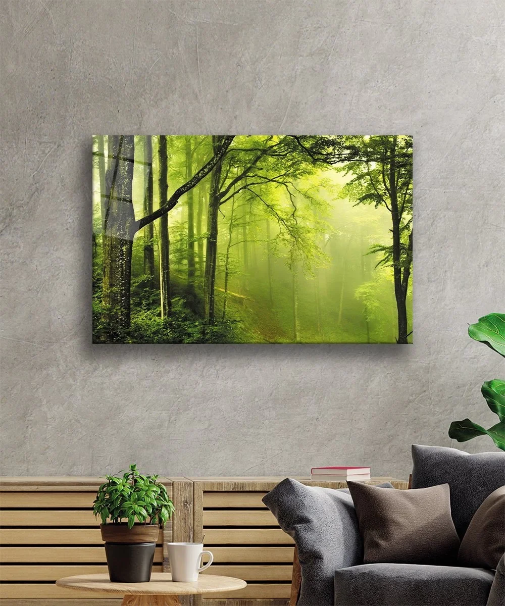 TEKNOO- Tree Forest Green Landscape Glass Painting