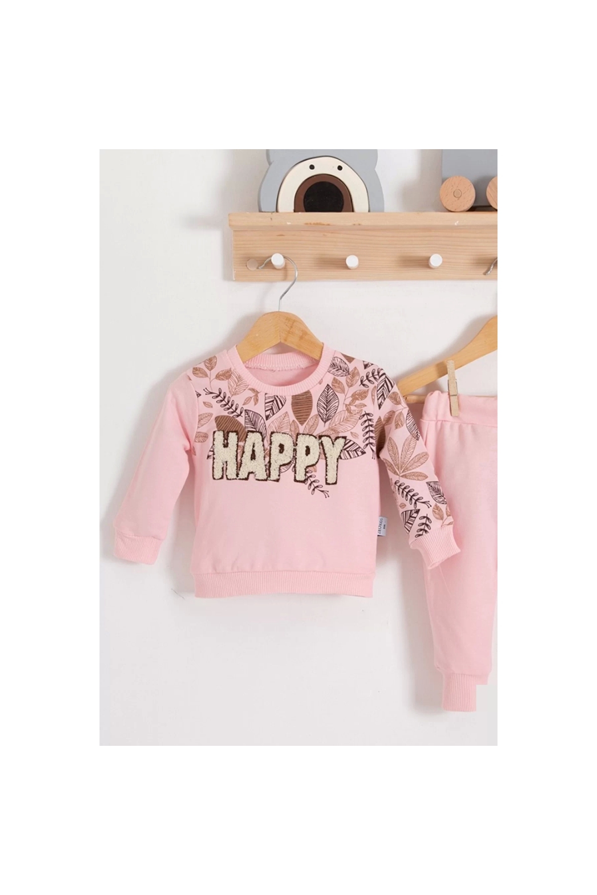 Happy Leaf Patterned 2-Piece Baby Girl Set