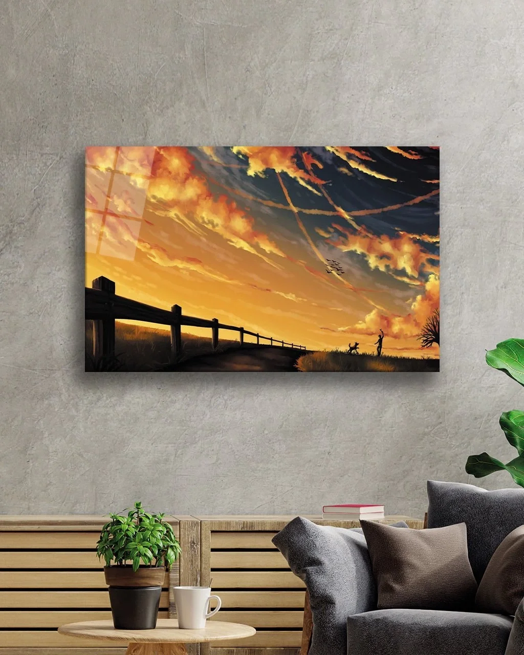 The printing of the glass painting is in the form of direct printing on the back surface of the glass. In this way, the printing remains behind the glass and you will see the high printing quality with the elegance of the glass.