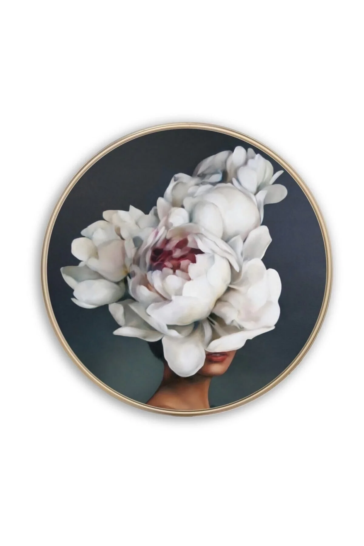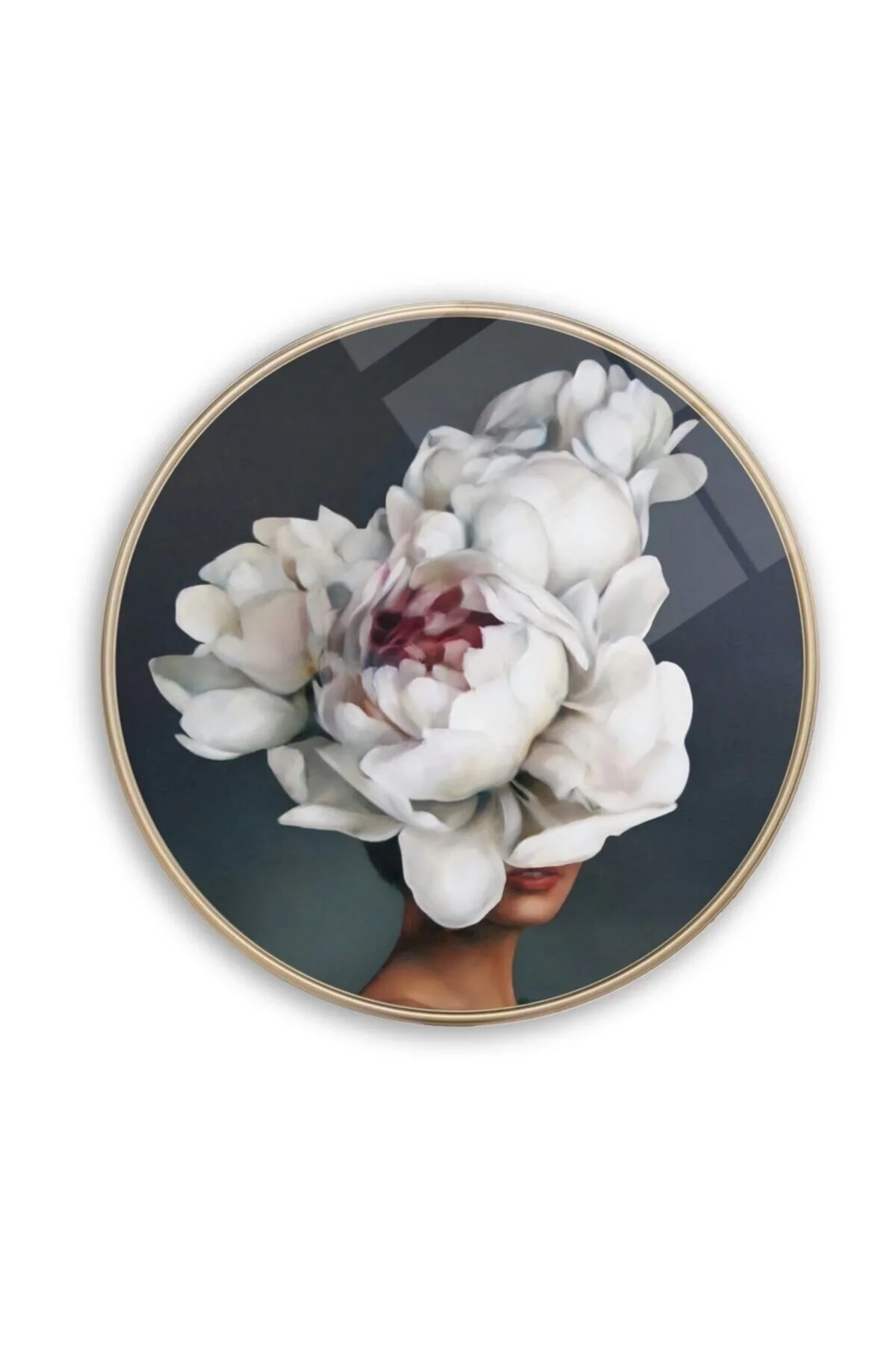 Woman with Flowers Round Glass Painting