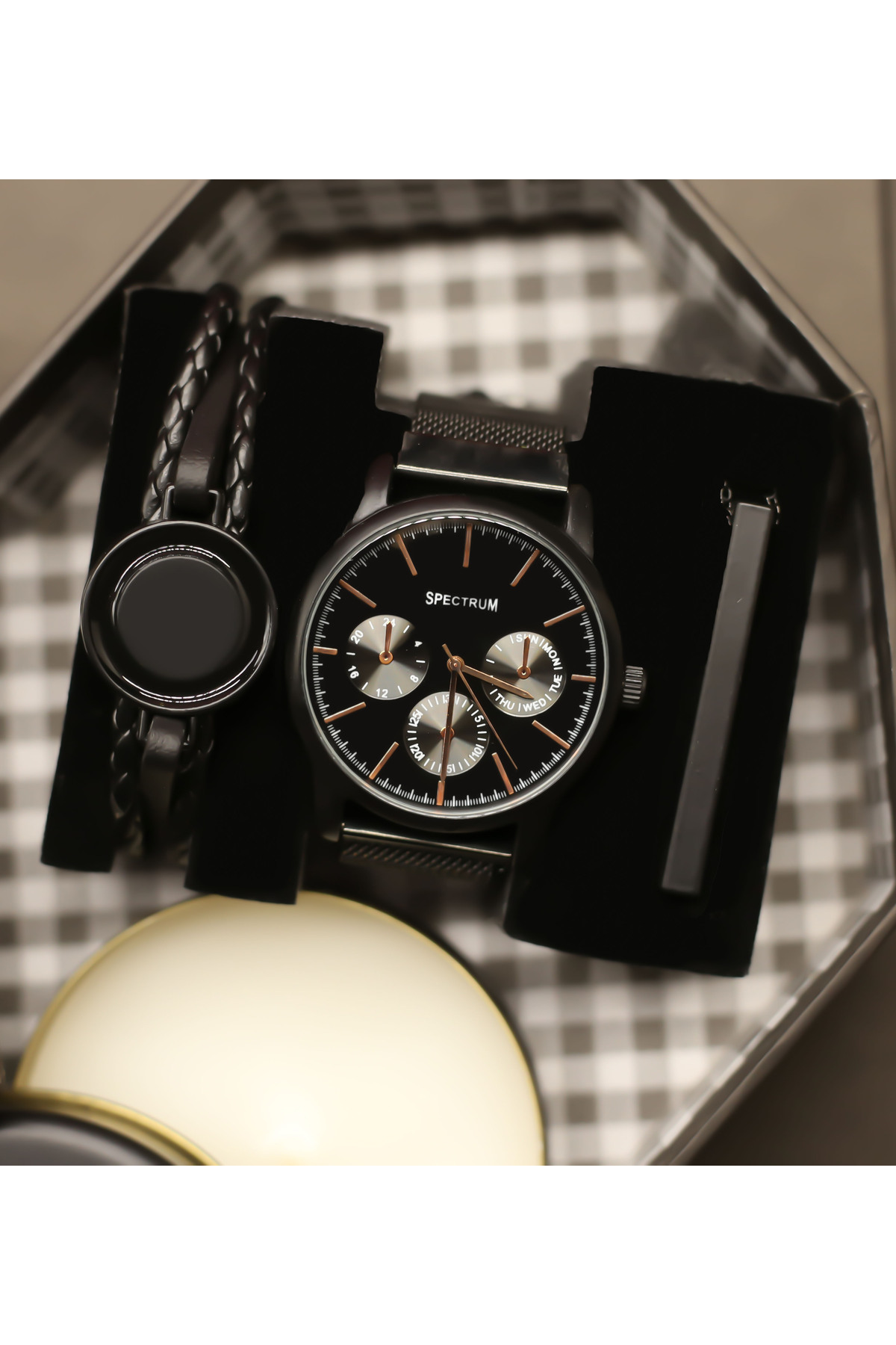 PRODUCT CONTENT Box with Heart Lid *Your gift set will be shipped with the box with heart lid. Personalized Instagram Frame *It will be personalized with 1 photo you send to us inside the pocket-shaped frame. *You can easily display it on your table with its support stand. Spectrum Men's Wristwatch Black Mesh Strap *Specifications Dial Diameter: 40mm Case Thickness: 7mm Watch Length: 240mm Band Width: 20mm Water Resistance: 3Bar/30 Meters *The watch is shipped in standard strap size. *The watch band can be added or removed to adjust it to your wrist. Personalized Letter Bracelet *It is personalized. It is made by laser engraving method. The text is not erased or deformed in any way. Personalized Rod Necklace *It is personalized. It is made by laser engraving method. The text is not erased or deformed in any way. *Metal: Bijouterie Material *Pendant Pendant Dimensions: 4 mm *It will be made special for you by laser engraving by writing the name you want on it. * The box is metal. * Size: 7 cm x 4 cm.