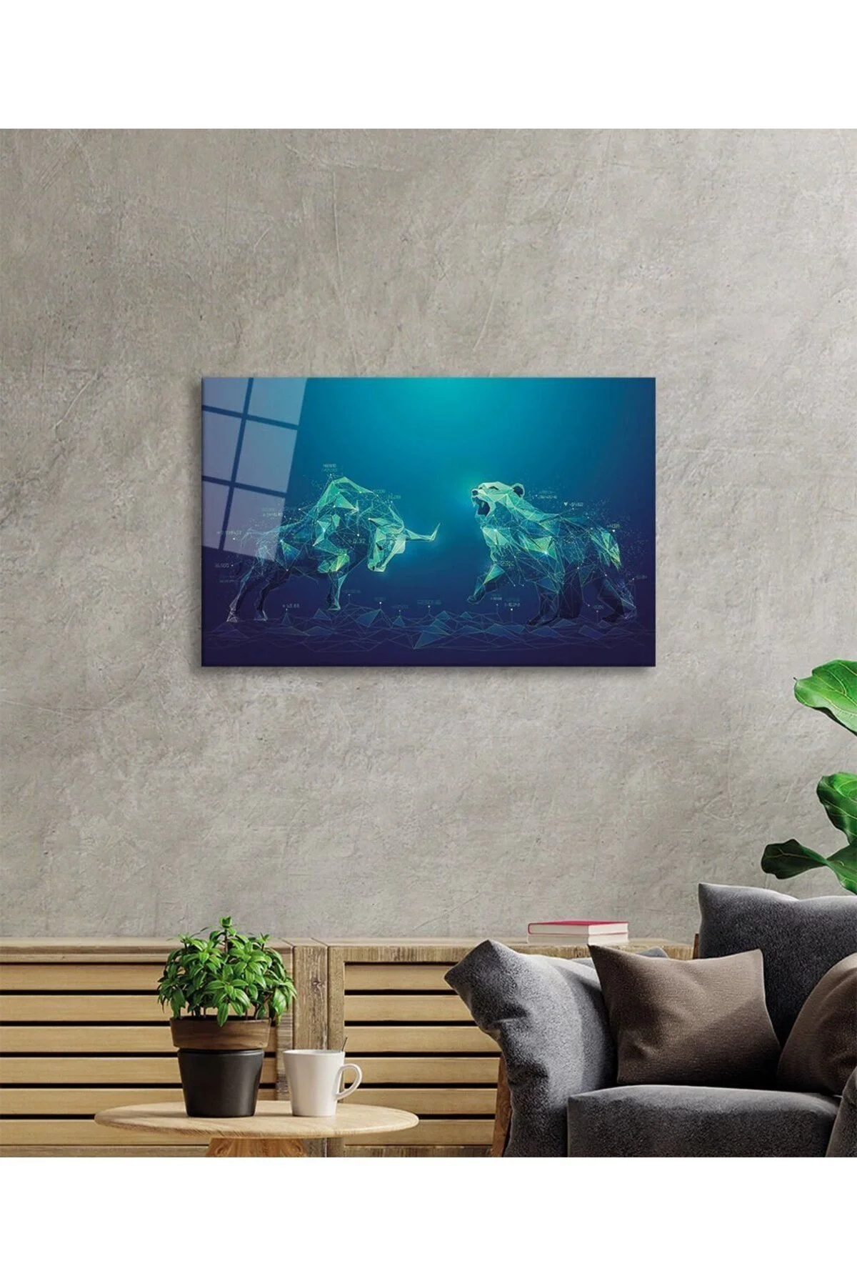Blue Bull Polar Bear Abstract Glass Painting, Home And Office Wall Decoration