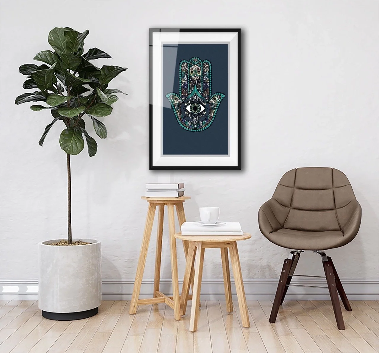 TEKNOO- Mother Fatma's Hand Glass Painting with Blue Frame Effect