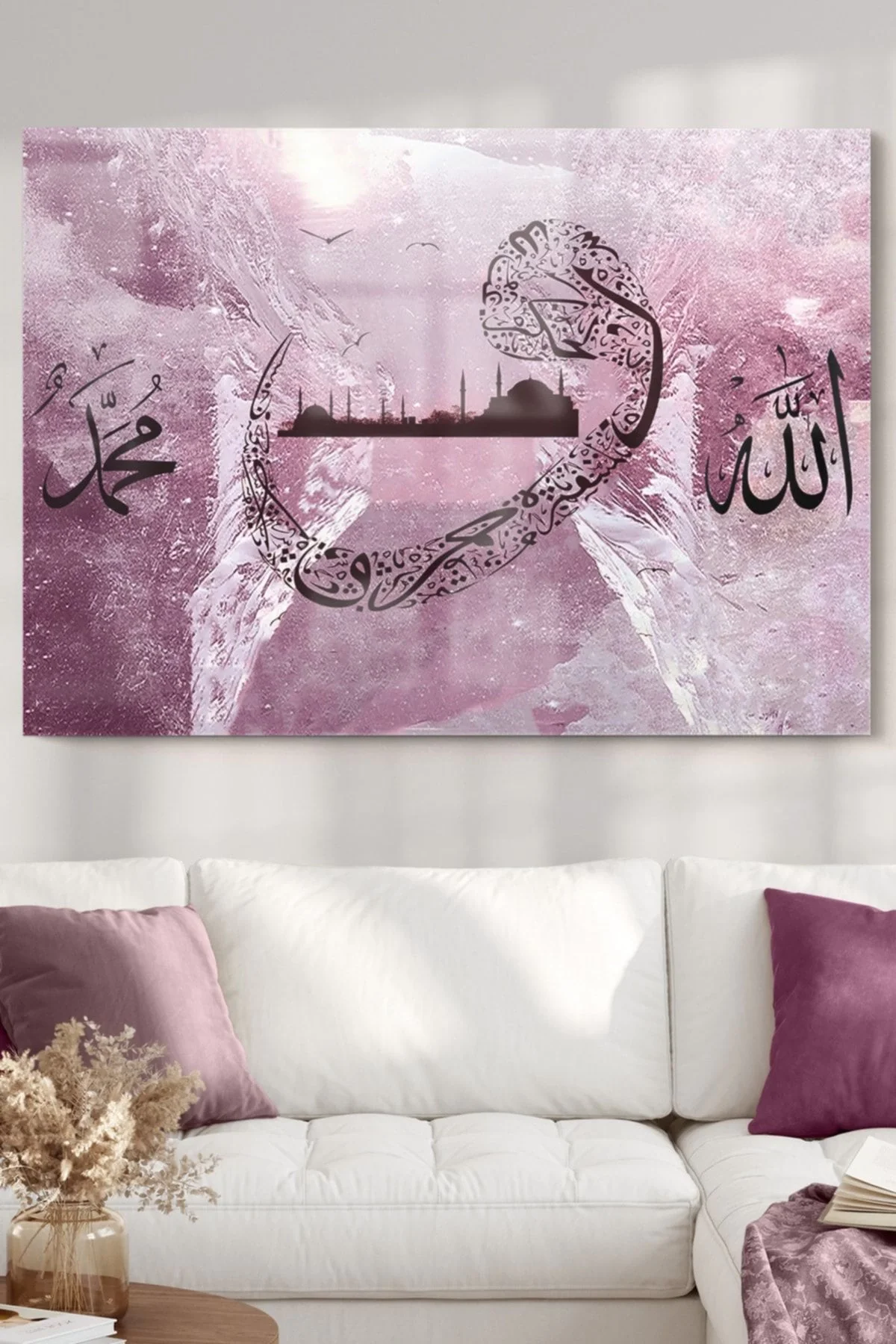 Allah And Muhammad Vav Written| Religious Themed Glass Painting | 50x70cm