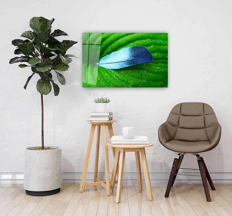 Blue Feather Glass Painting