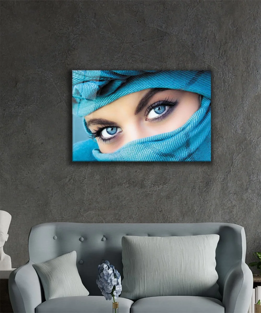 TEKNOO- Woman with Blue Eyes and Blue Veil Glass Painting