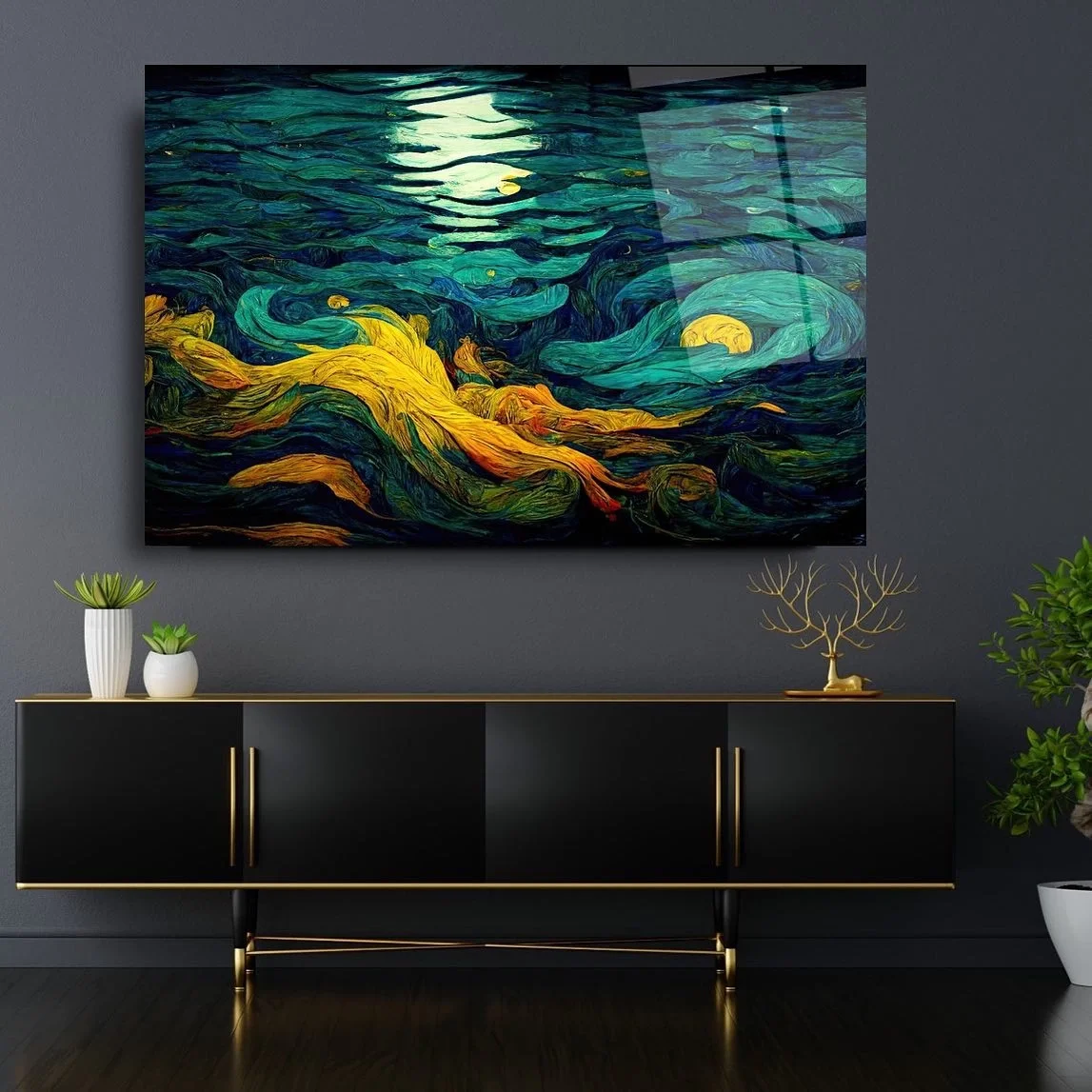 Glass paintings, which are a unique reflection of visual art, add a fascinating aesthetic to your space with a touch. These unique works, which create an extraordinary effect with the dance of light, tell a different story at every glance. Equipped with extraordinary and eye-catching details, these paintings offer an ideal option to give your home or workplace an extraordinary atmosphere. Glass paintings, carefully designed by artists who combine traditional art with modern touches, offer elegance and complexity together. These paintings, each a work of art, take your walls away from the ordinary and give your living spaces a unique identity. While the story behind each piece provides an endless source of inspiration to the viewer, it dazzles the eye with the harmony of colors and patterns. Reflecting the dynamism and aesthetic taste of the modern age we live in, glass paintings offer an ideal option to transform the atmosphere of your home or workplace. If you want to get away from the ordinary and add originality to your living spaces, choose artistic glass paintings. Experience aesthetics and art together as you witness the magical dance of light.