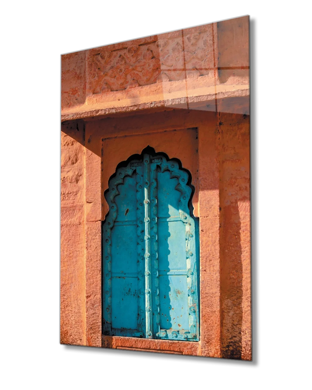 Glass paintings are definitely not a form of pasting a printed media to the glass. ;  It is prepared by direct UV printing on the glass surface with a special technique