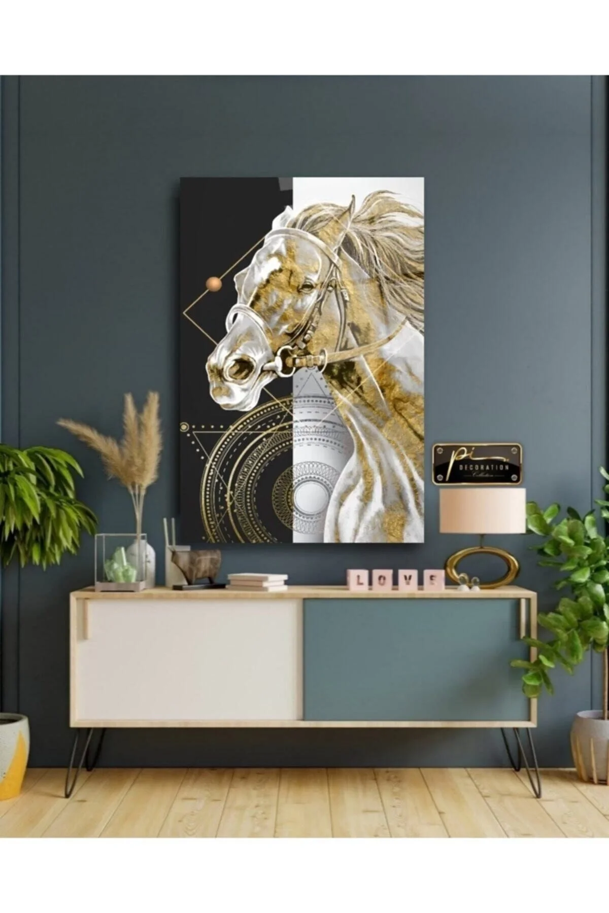Gold Horse Glass Painting
