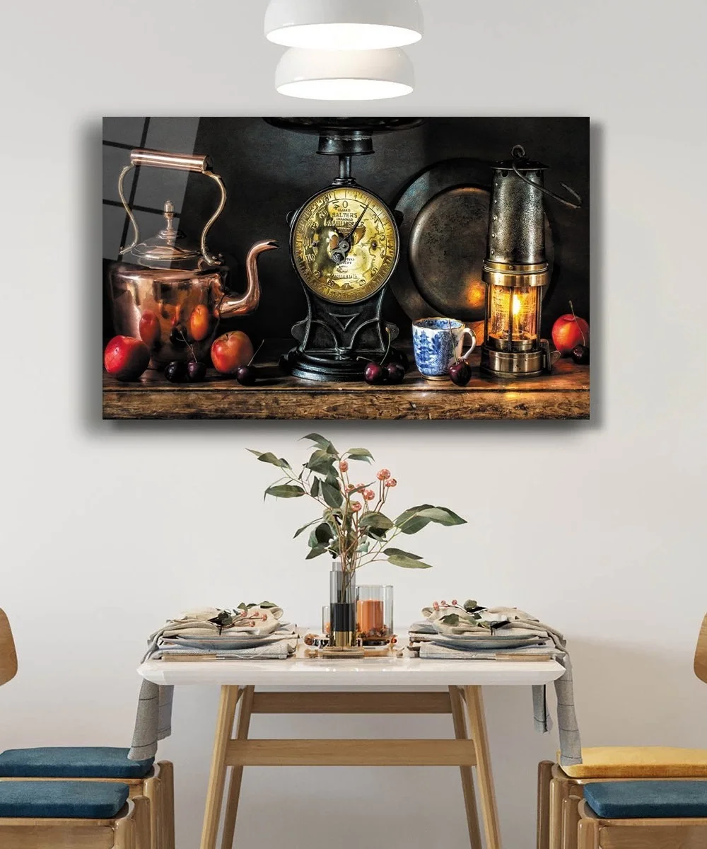 Still Life Glass Painting with Images of Fruits and Kitchen Ingredients