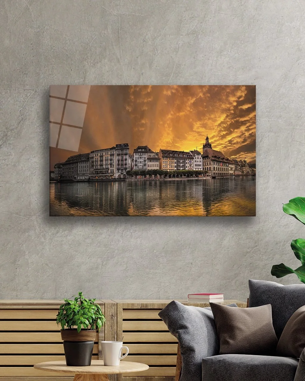 Sunset City Lake Glass Painting Sunset City Lake Painting