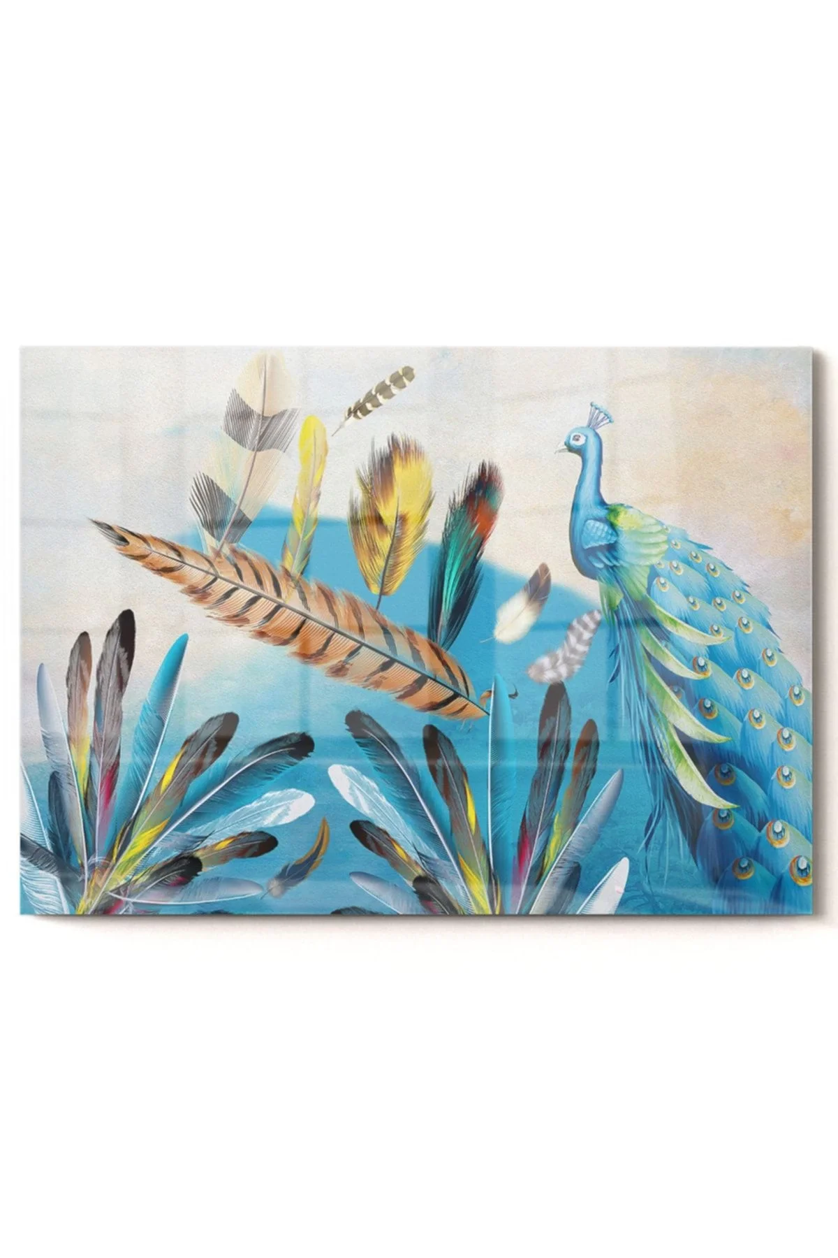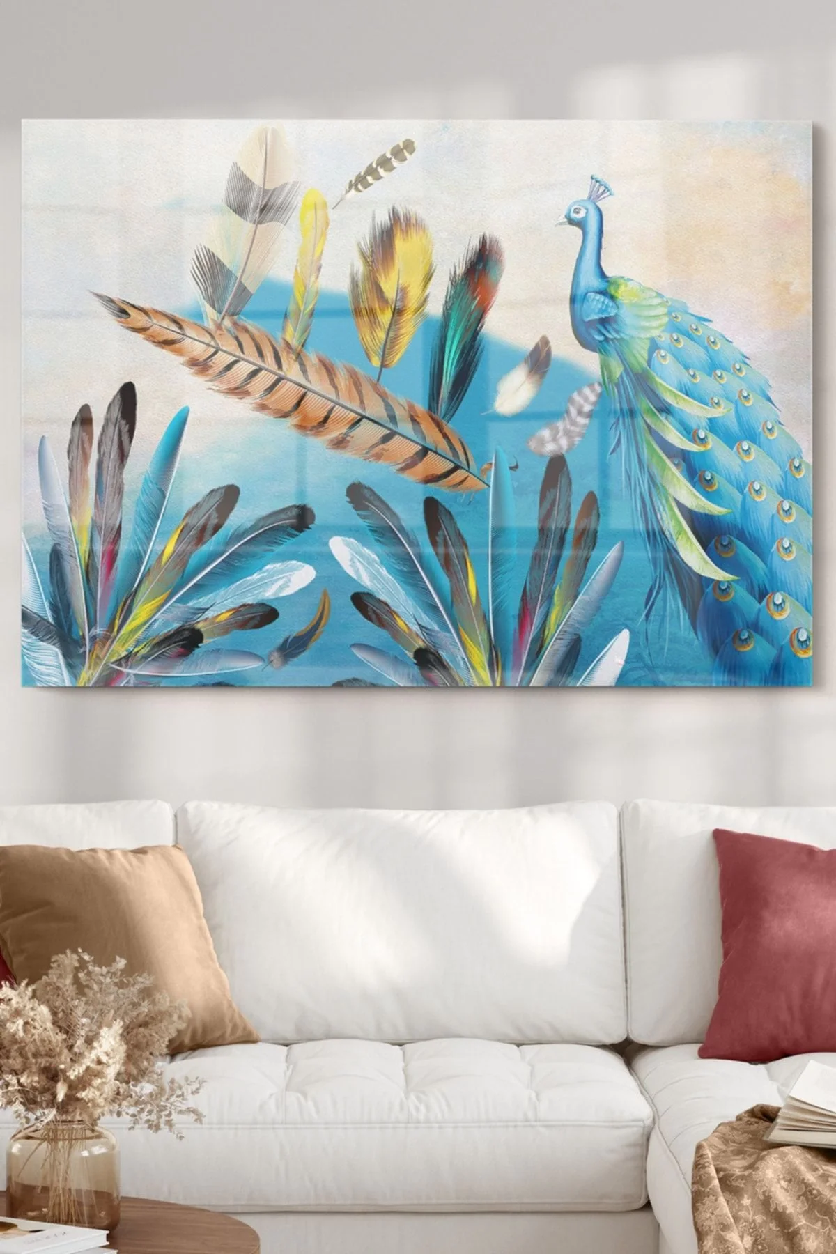 Peacock And Feather | Animal Themed Glass Painting | 50x70cm