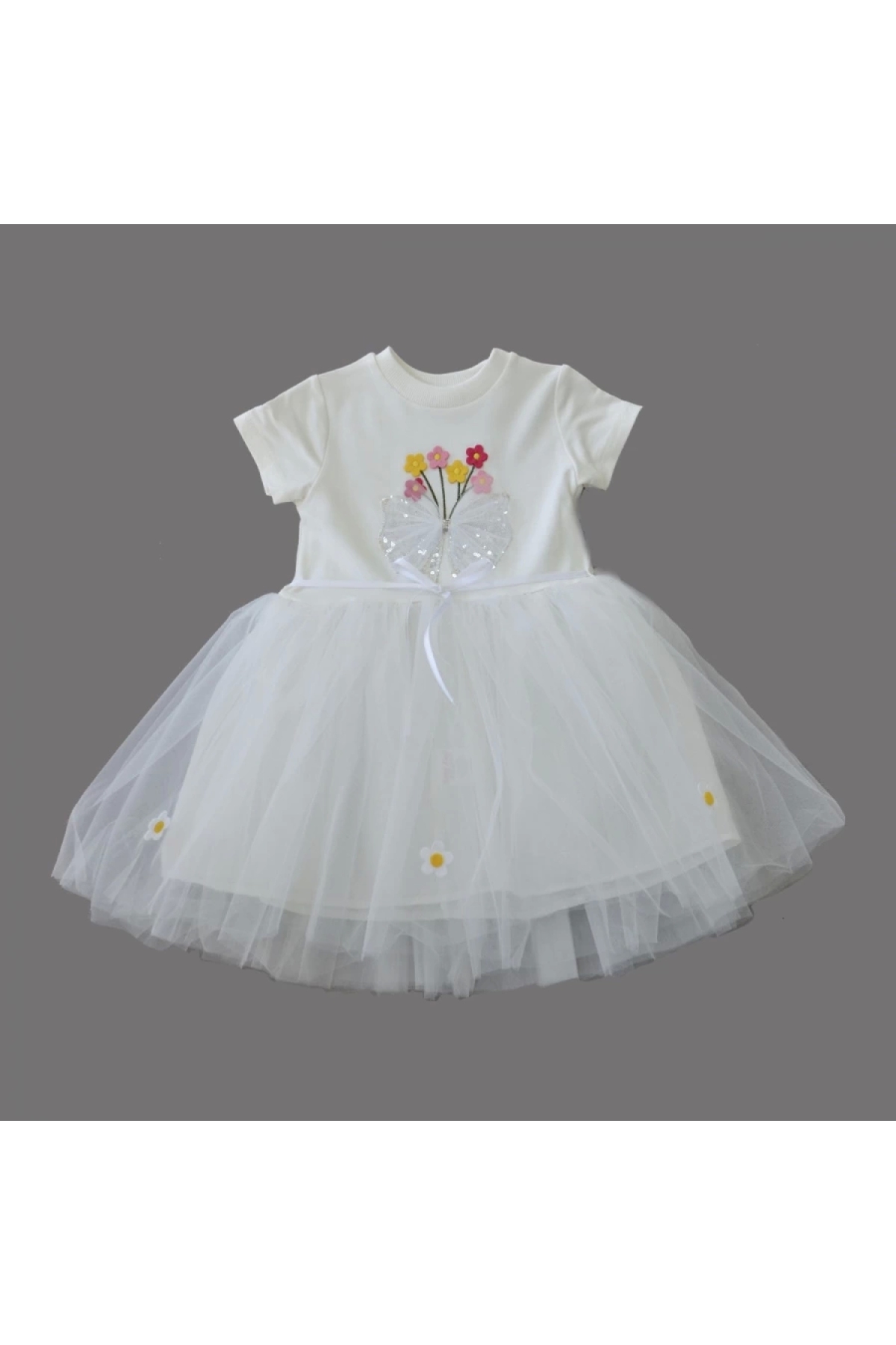 1-2-3 Years Old Tulle Bow Flowers Embroidered Lined Baby Girl Tutu Dress