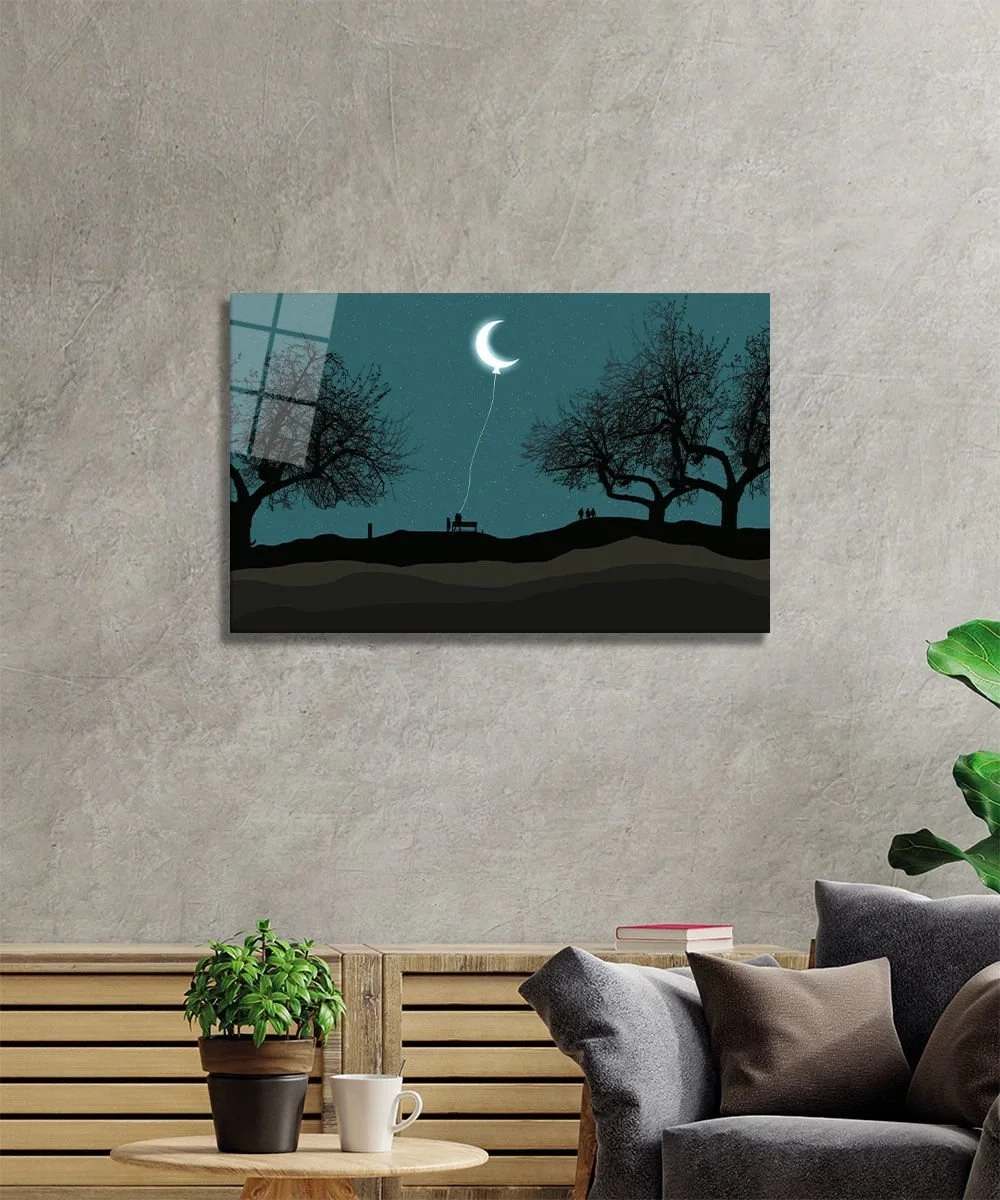 TEKNOO- Moon Balloon Silhouette Landscape Glass Painting