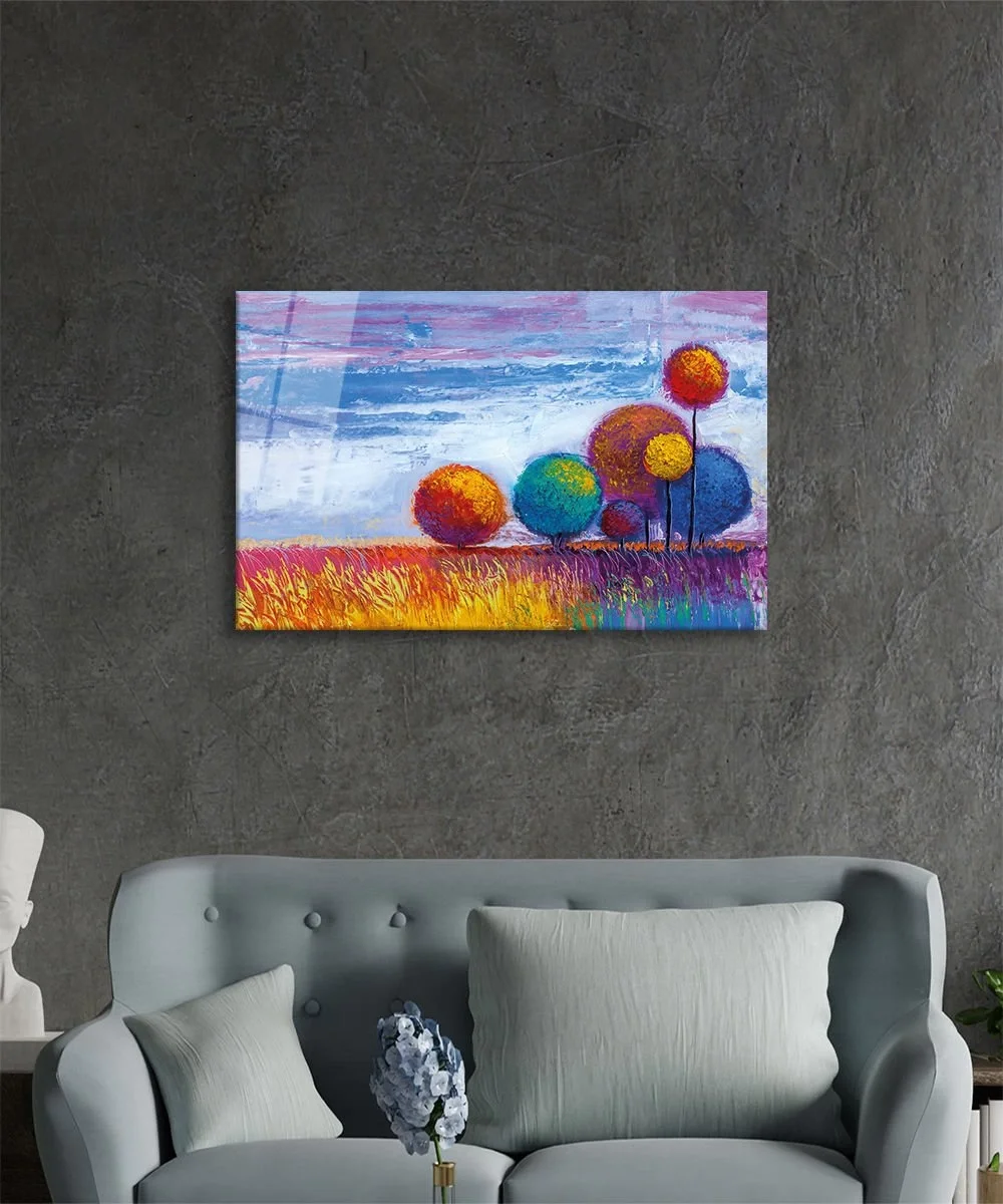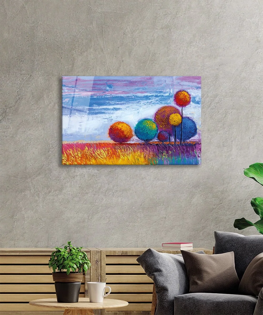 TEKNOO- Colorful Trees Nature Glass Painting Home and Office Wall Decoration