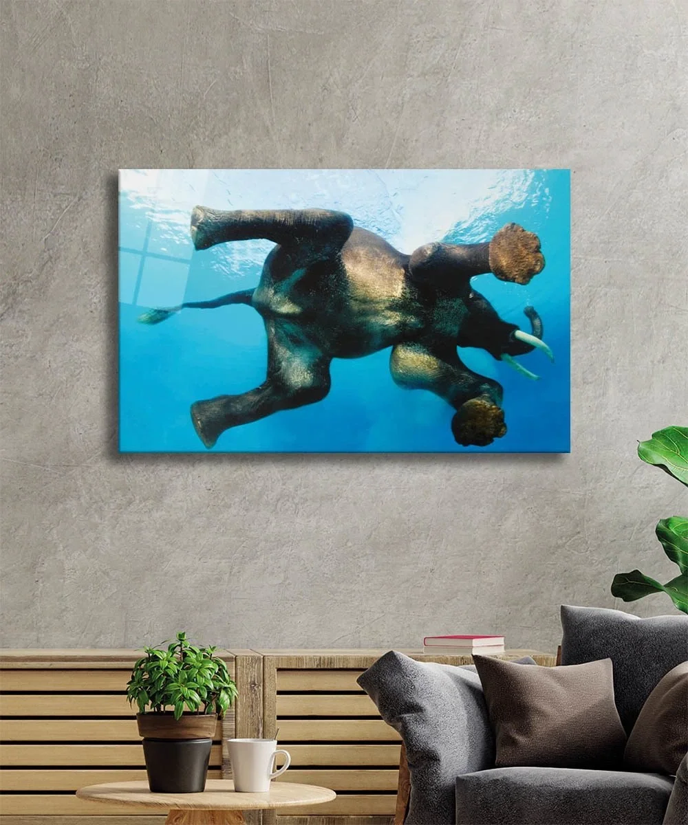 TEKNOO- Elephant in Water Glass Painting Elephant in Water