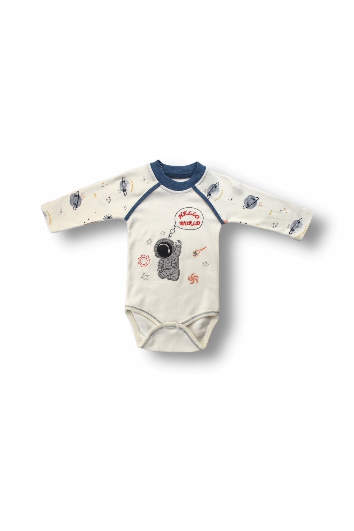 3-6 6-9 9-12 Months Cute Cosmonaut Embroidered Hat Long Sleeve Bodysuit 3 Piece Girl-Boy Baby Set