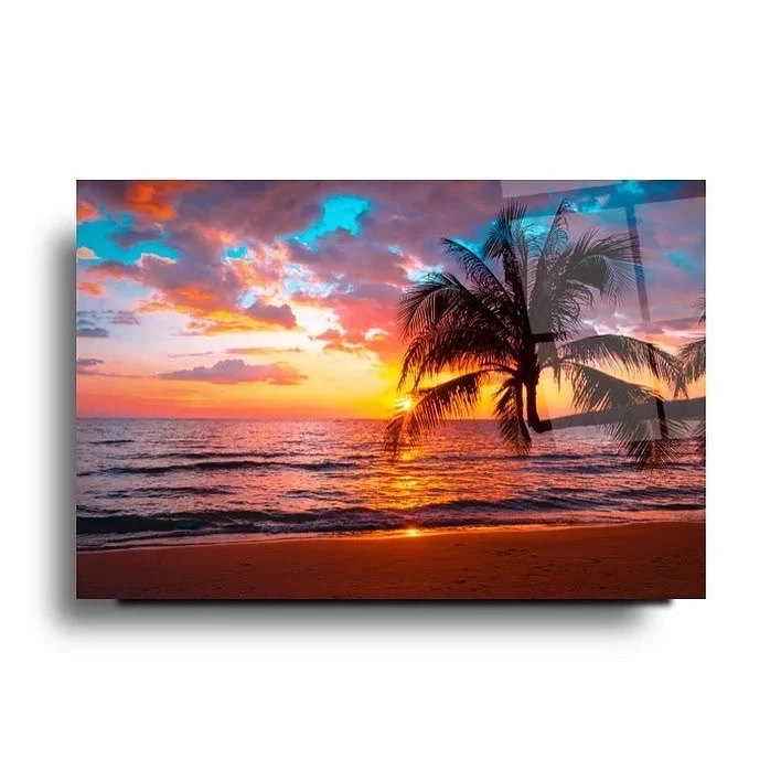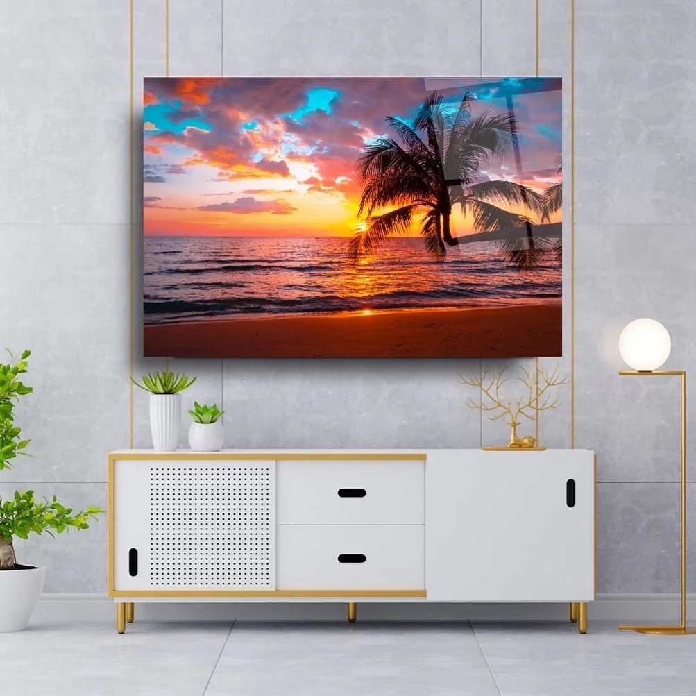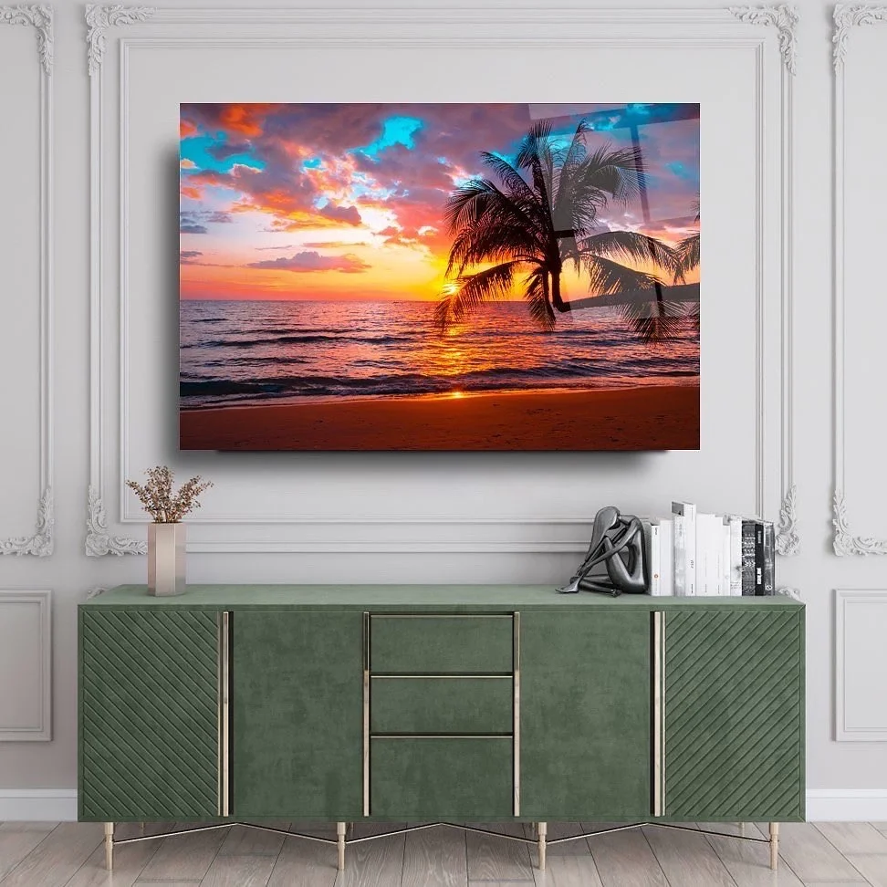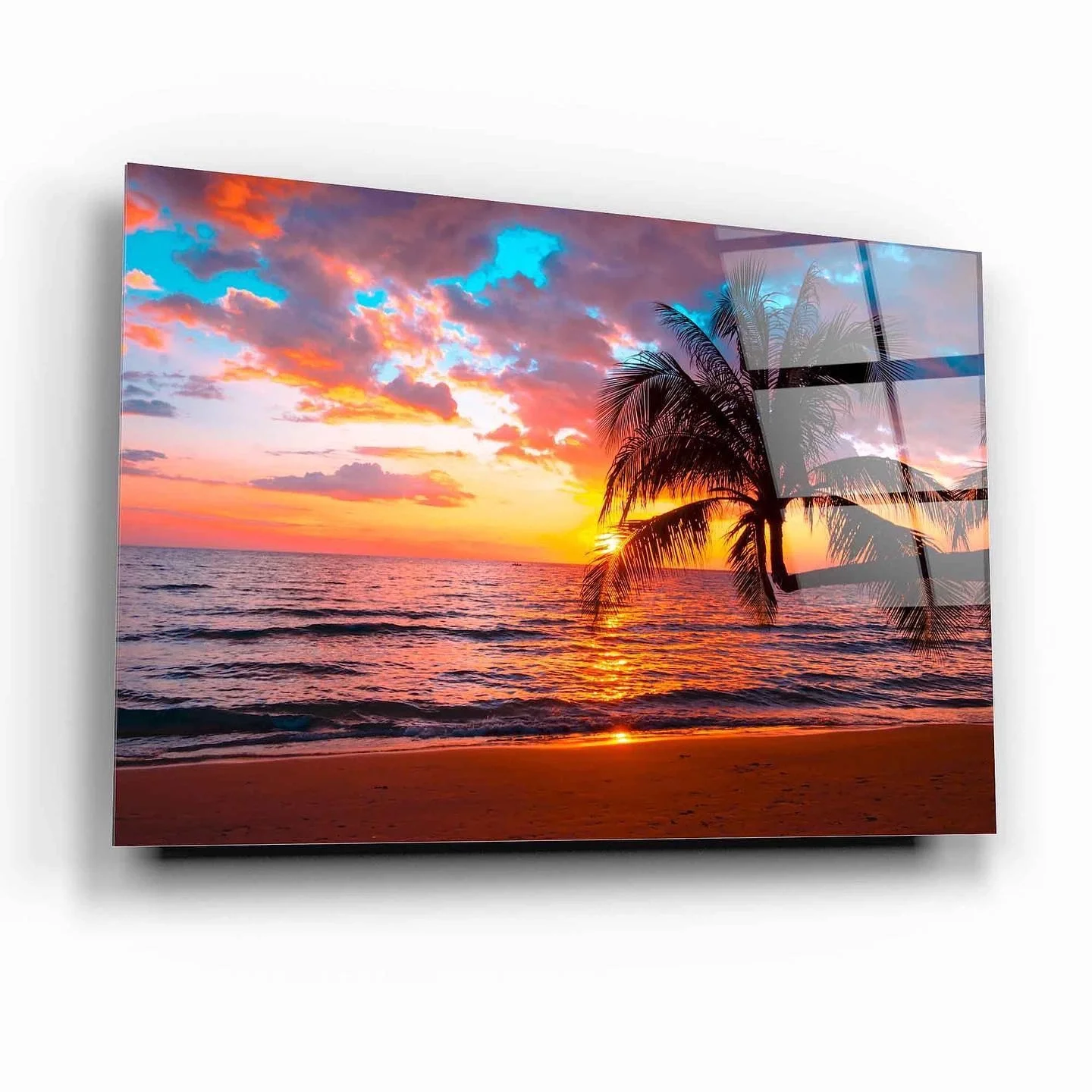 Palm Tree Sunset Seascape Artistic Glass Painting