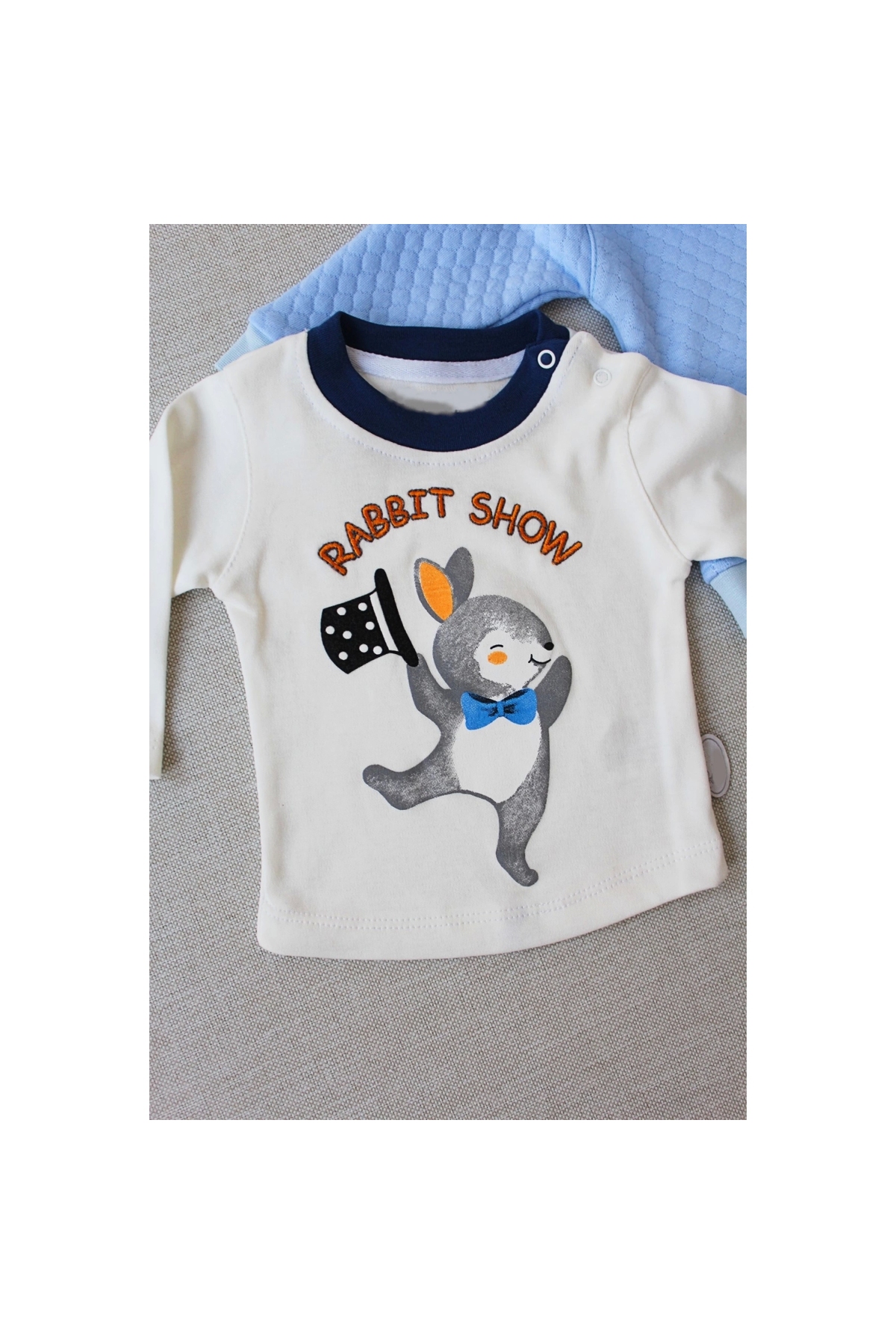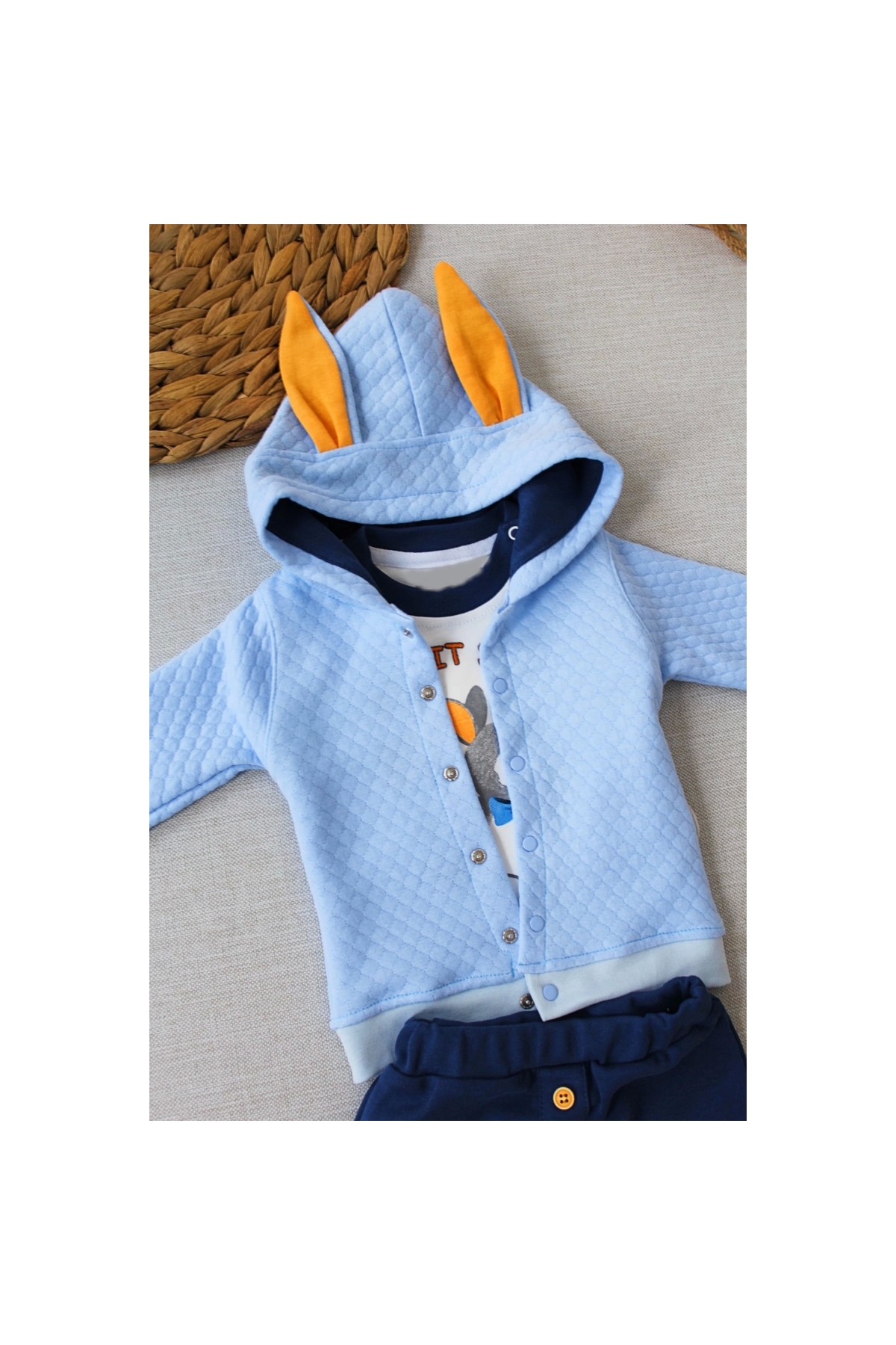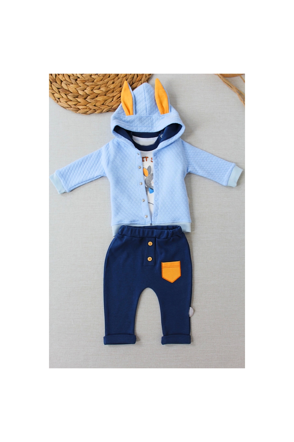 6-9-12 Months Rabbit Show Embroidered Hooded Jacket Long Sleeve Sweat Baby Boy 3 Piece Set