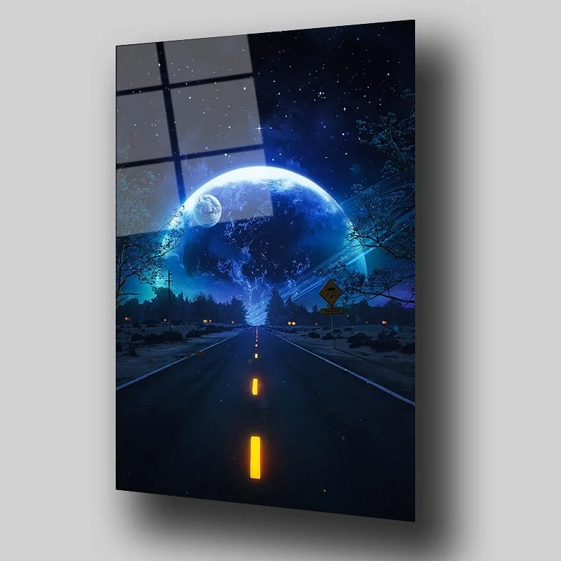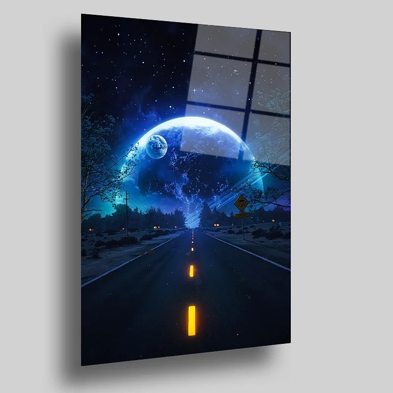 Night Moon and Road Themed Artistic Glass Painting