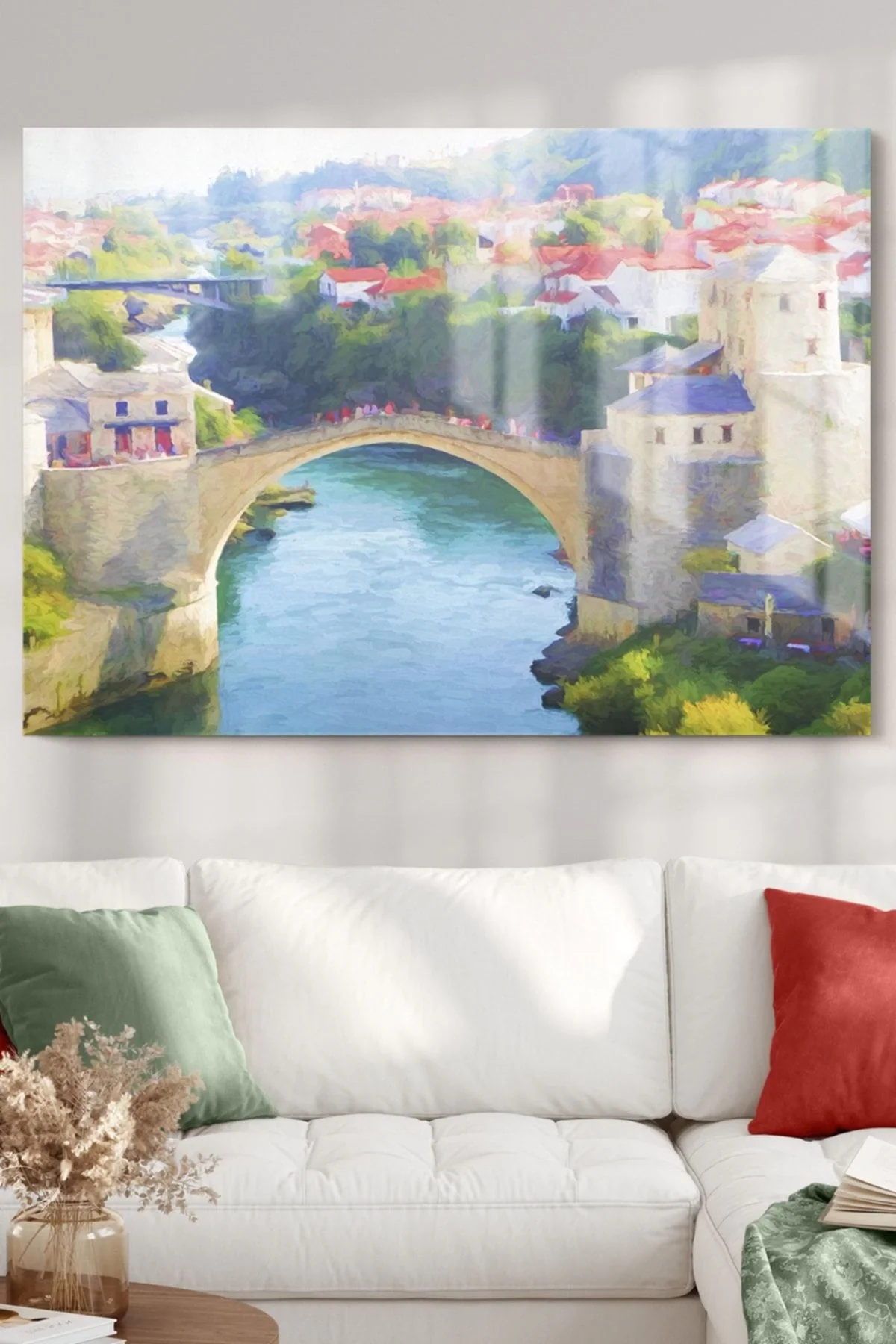 Mostar Bridge| City Themed Glass Painting | 50x70cm