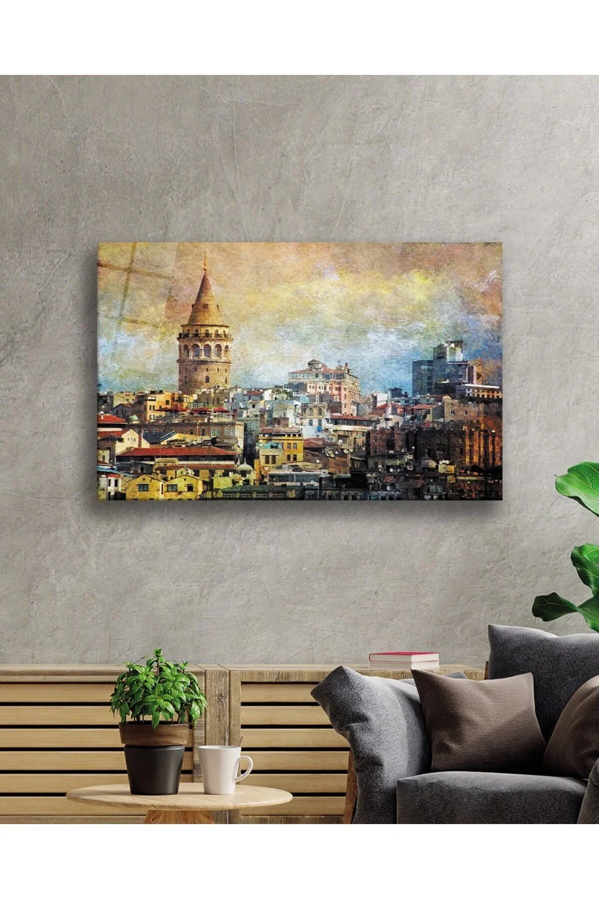 Watercolor Istanbul Galata Tower Glass Painting, 4mm Durable Glass