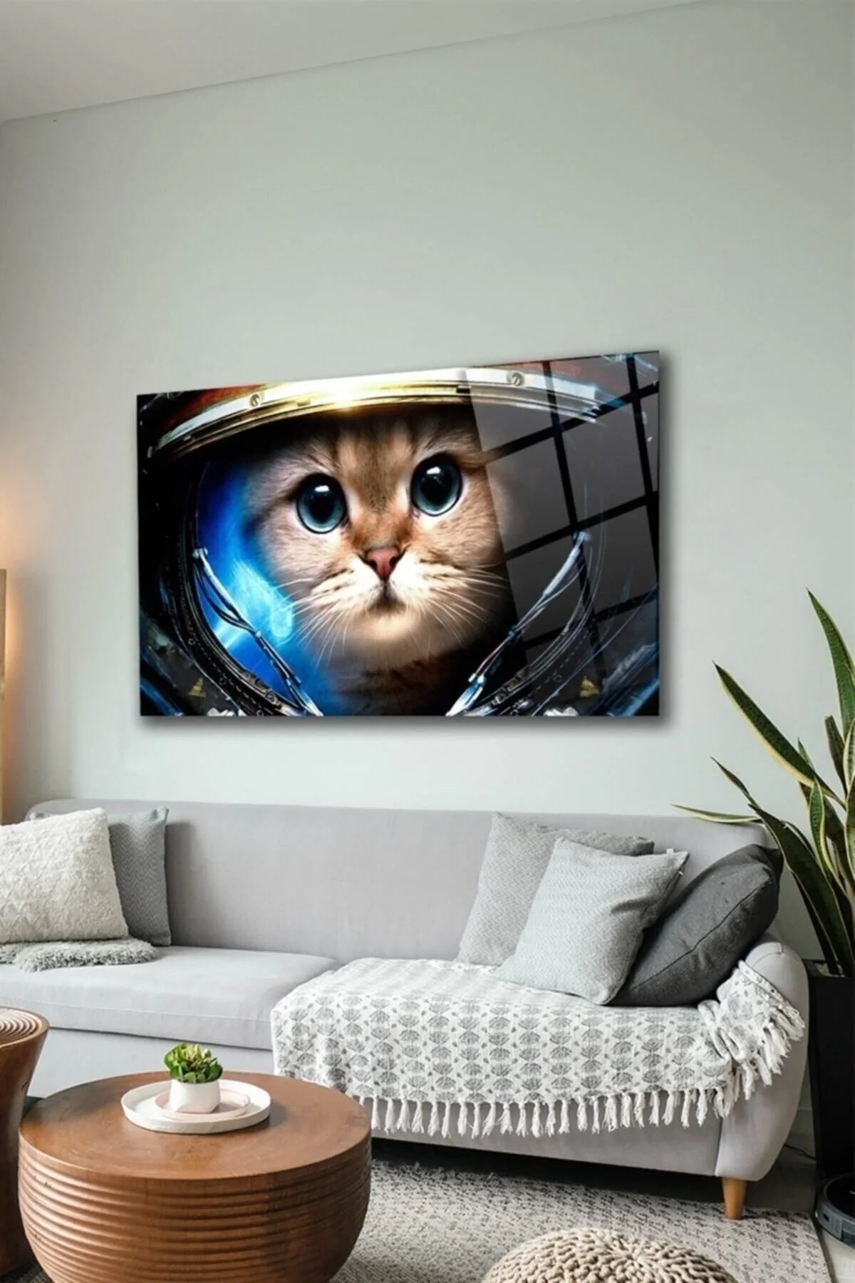Astronaut Cat Glass Painting Wall Decoration