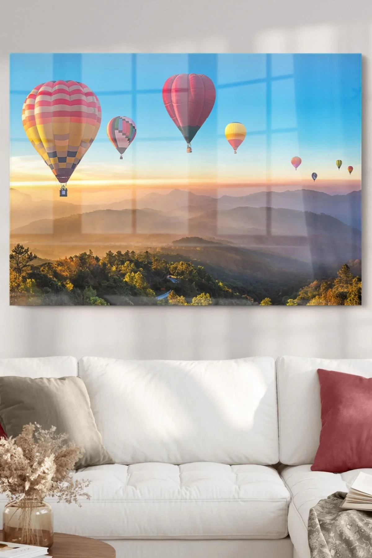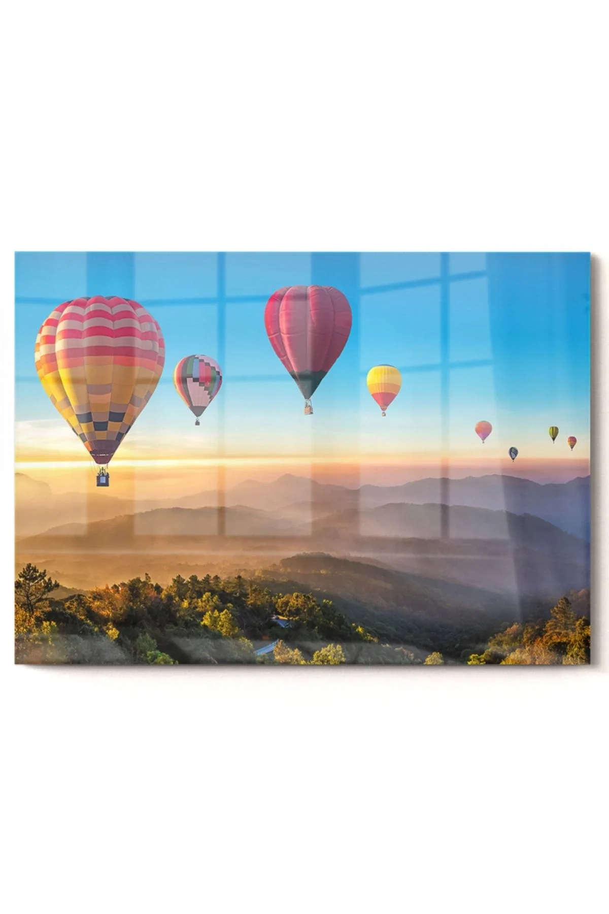 Flying Colorful Balloons | Landscape Themed Glass Painting | 50x70cm