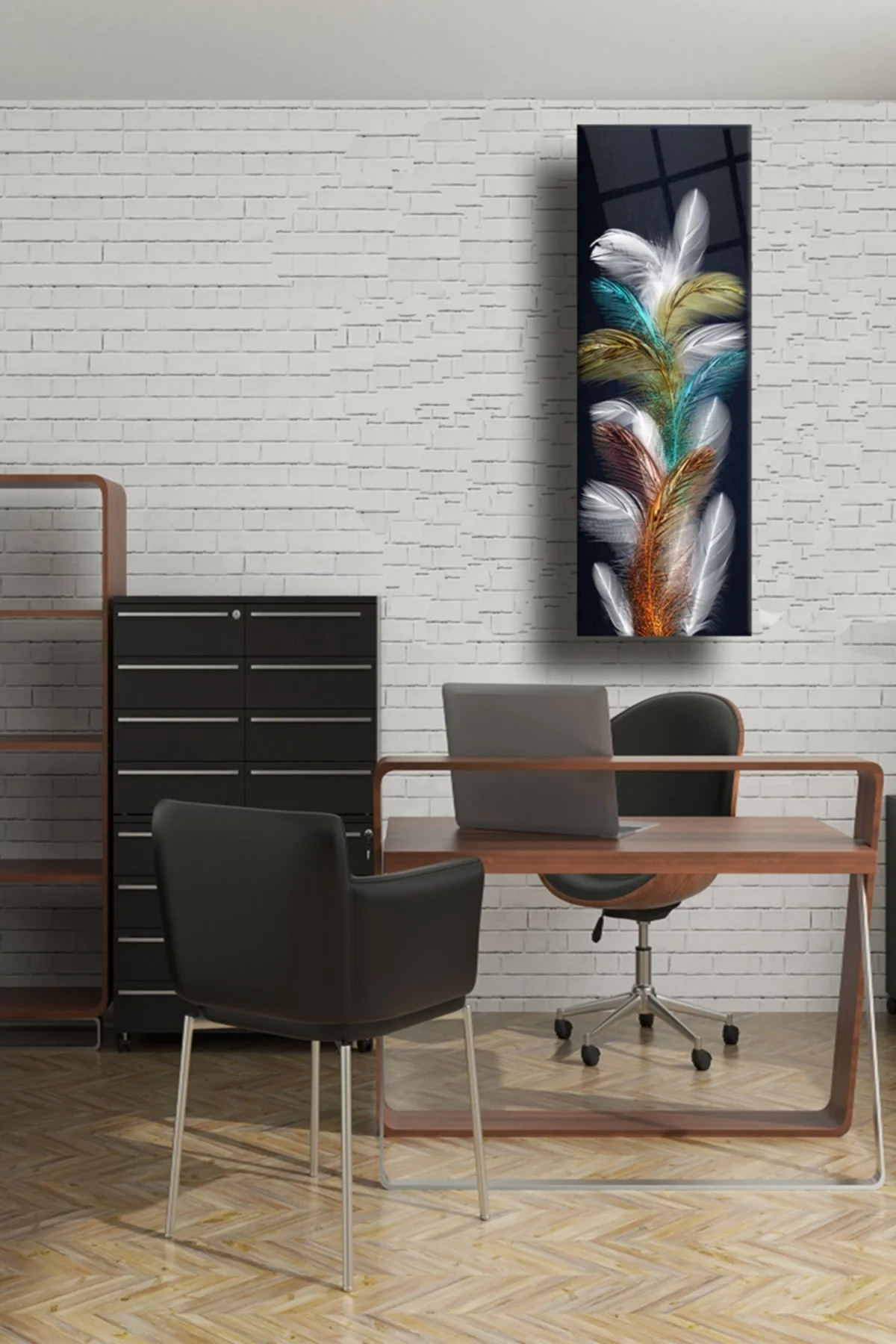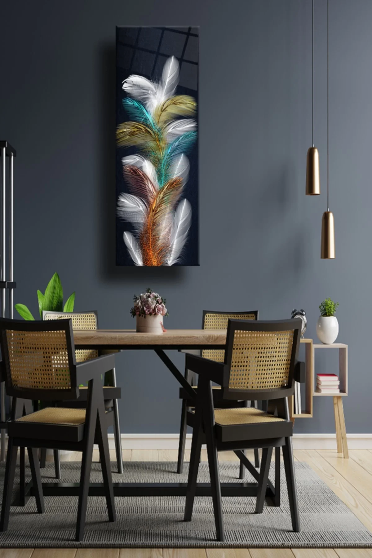 TEKNOO- Vertical Flower Glass Painting, Decorative Wall Decoration