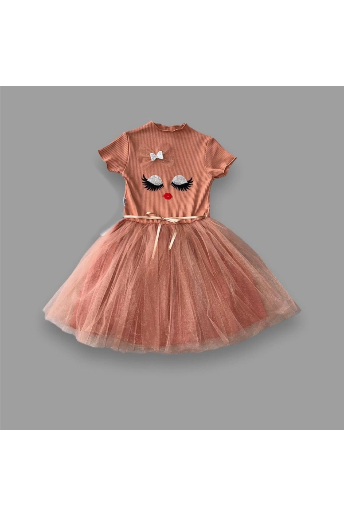 5-6-7 Years Old Sequined Ornate Face Printed Girl's Dress