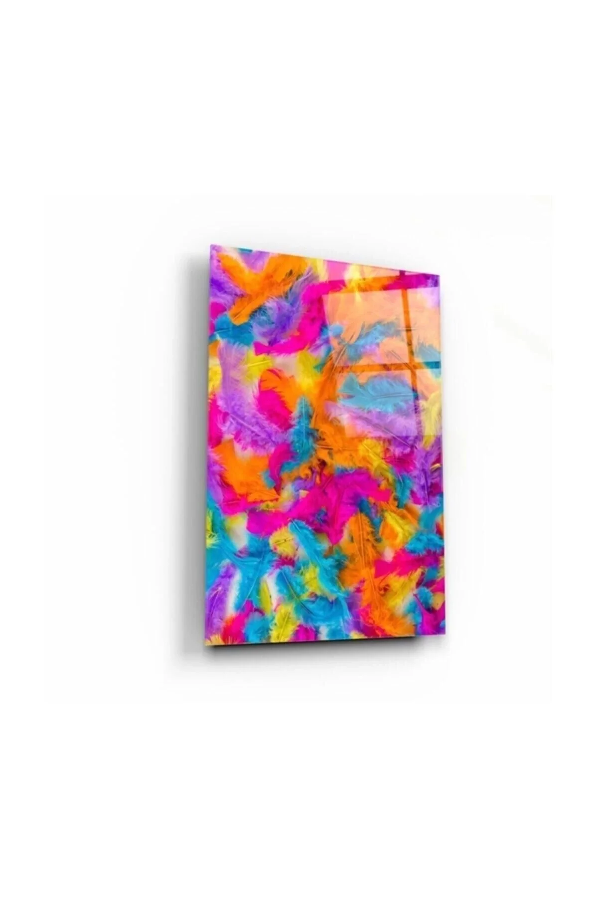 Harmony of Colored Feathers Glass Painting 50x70 Cm
