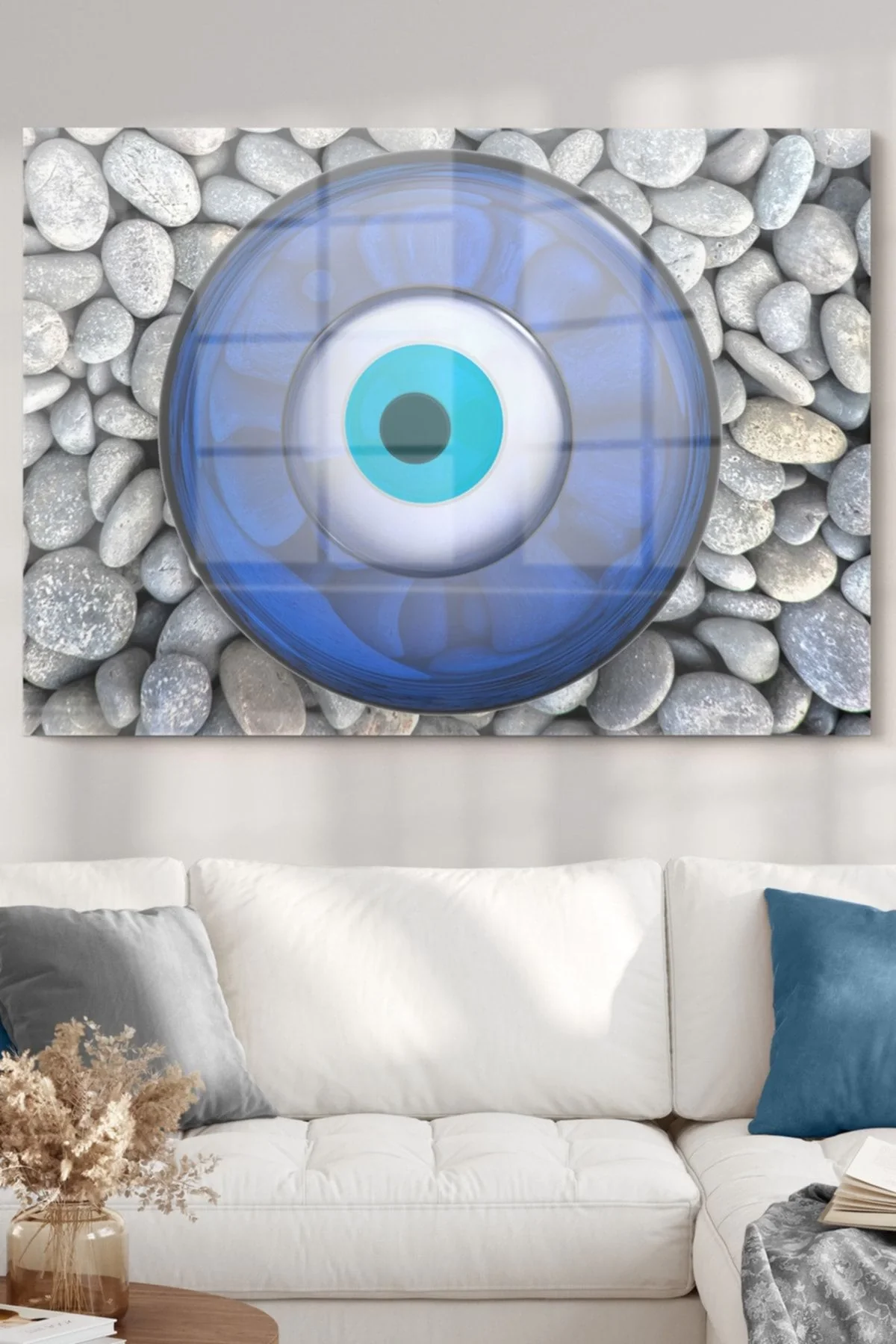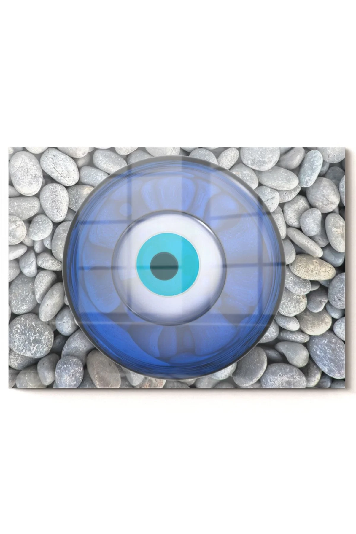Stones and Evil Eye Beads | Spiritual Themed Glass Table | 50x70cm