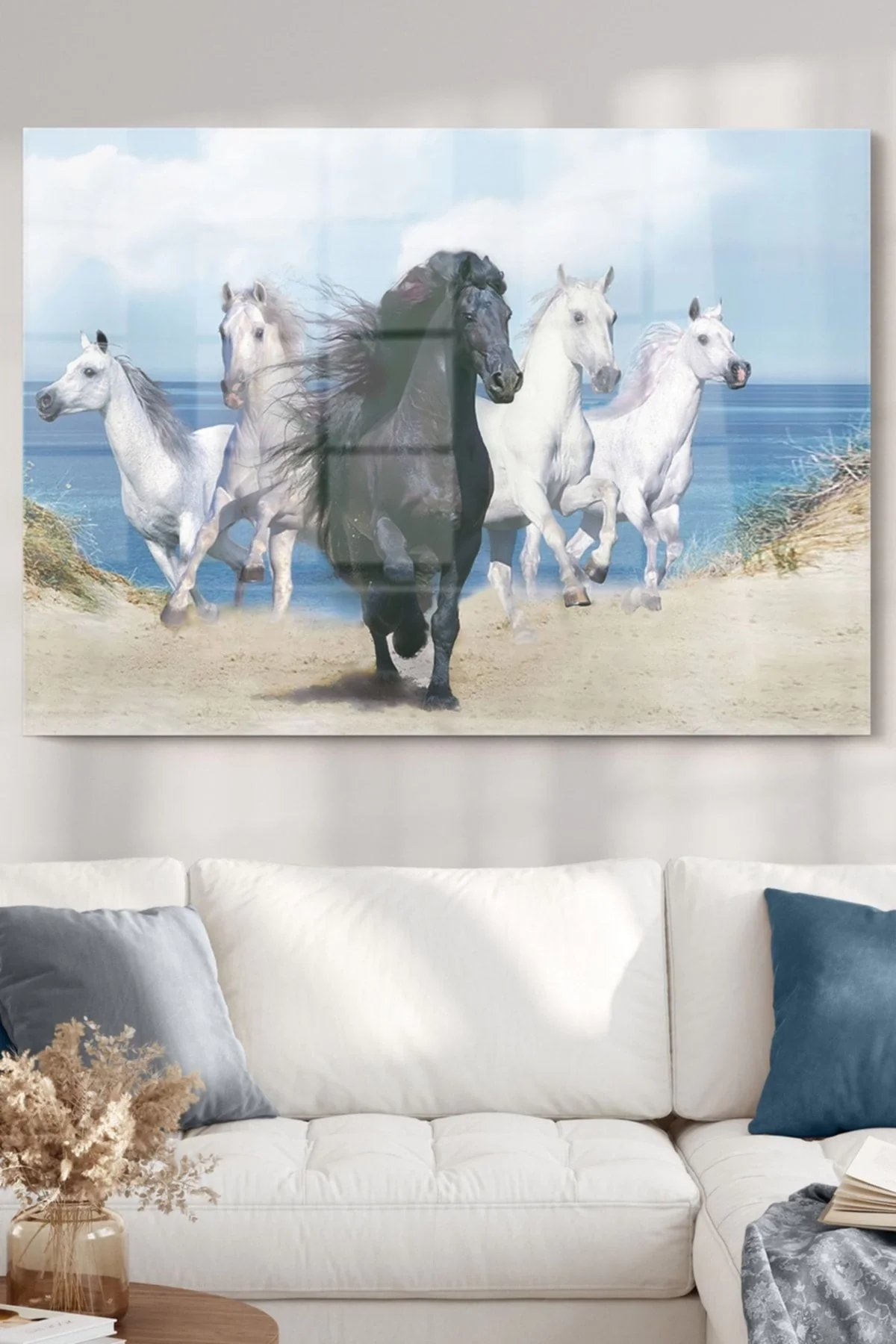 Running Horses | Animal Themed Glass Painting | 50x70cm