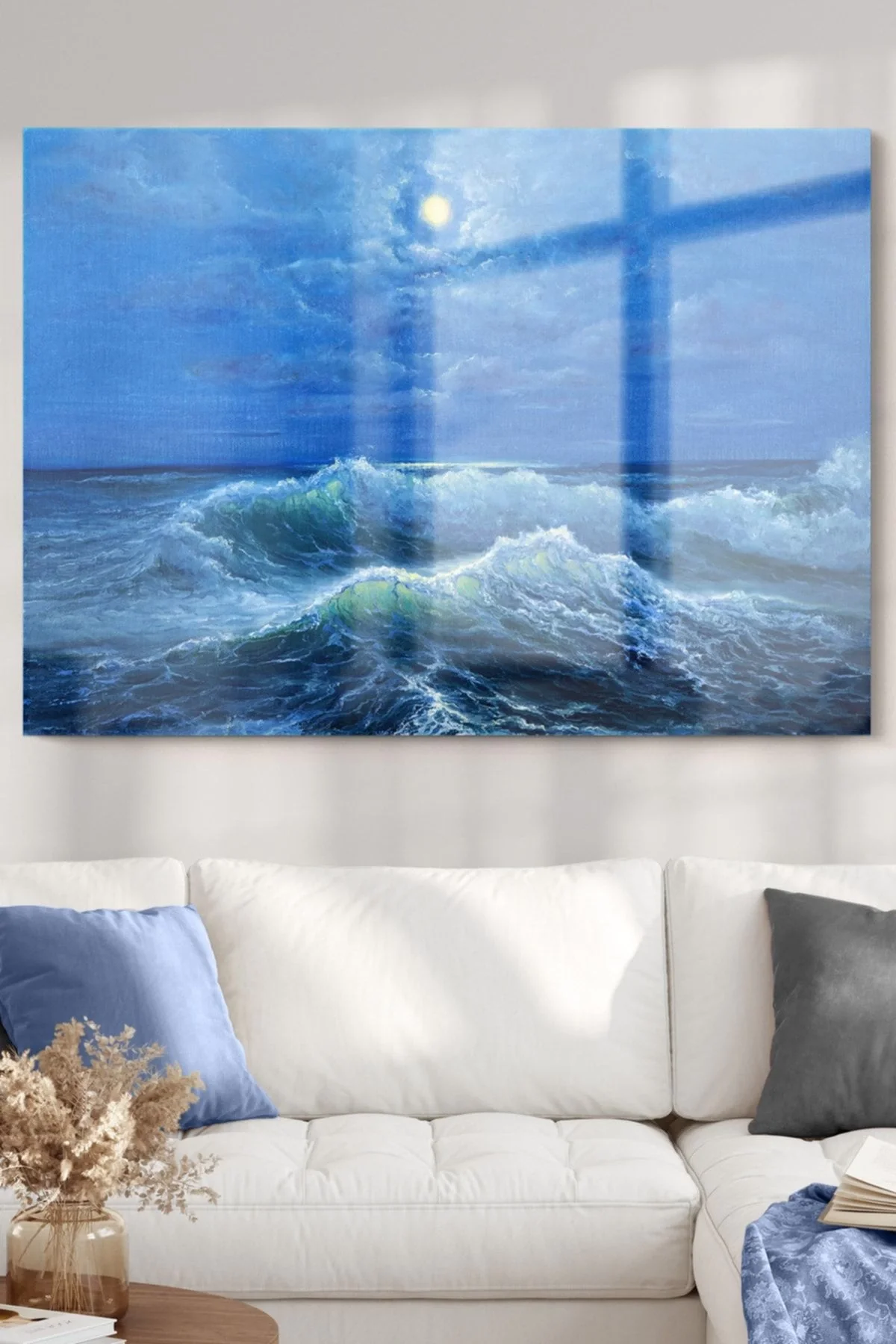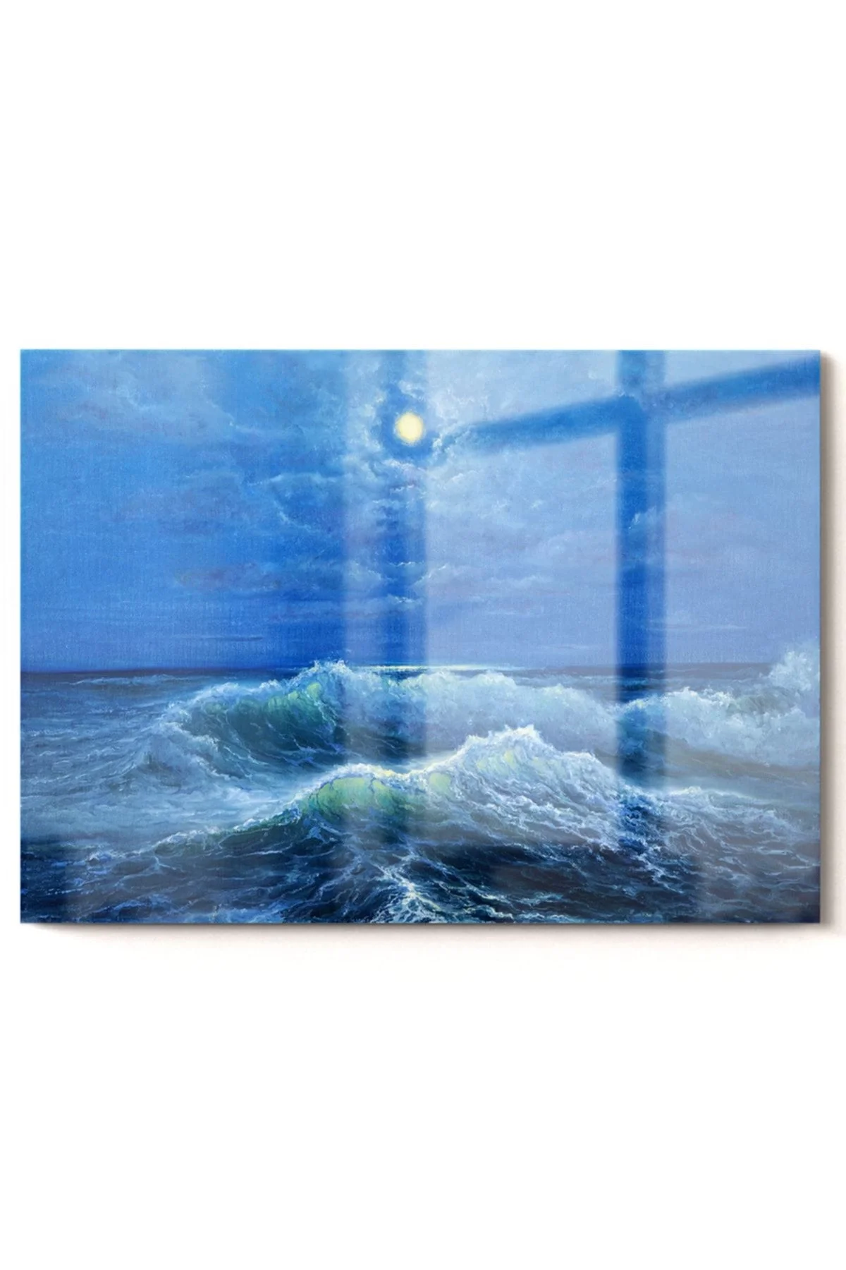 Full Moon And The Sea | Landscape Themed Glass Painting | 50x70cm
