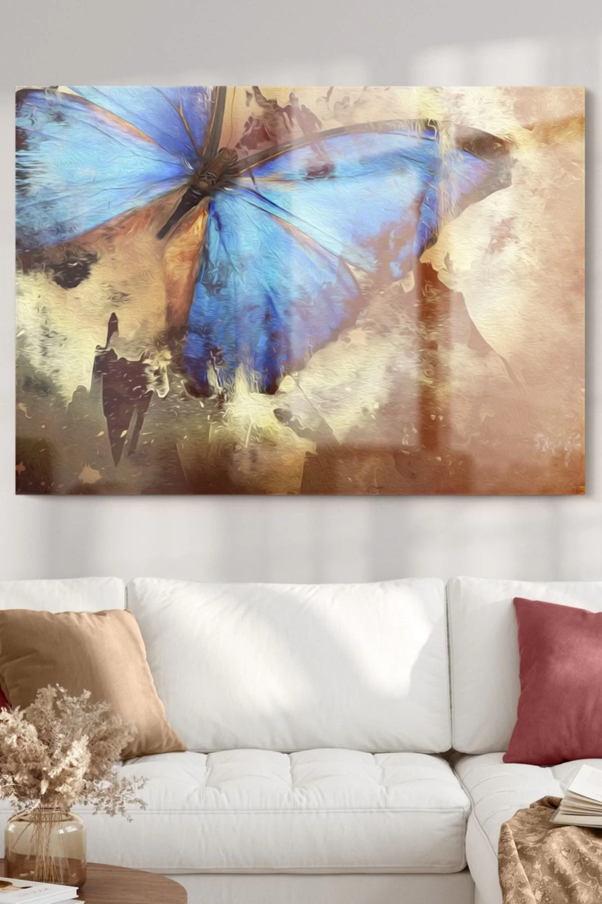 Blue Butterfly | Animal Themed Glass Painting | 50x70cm