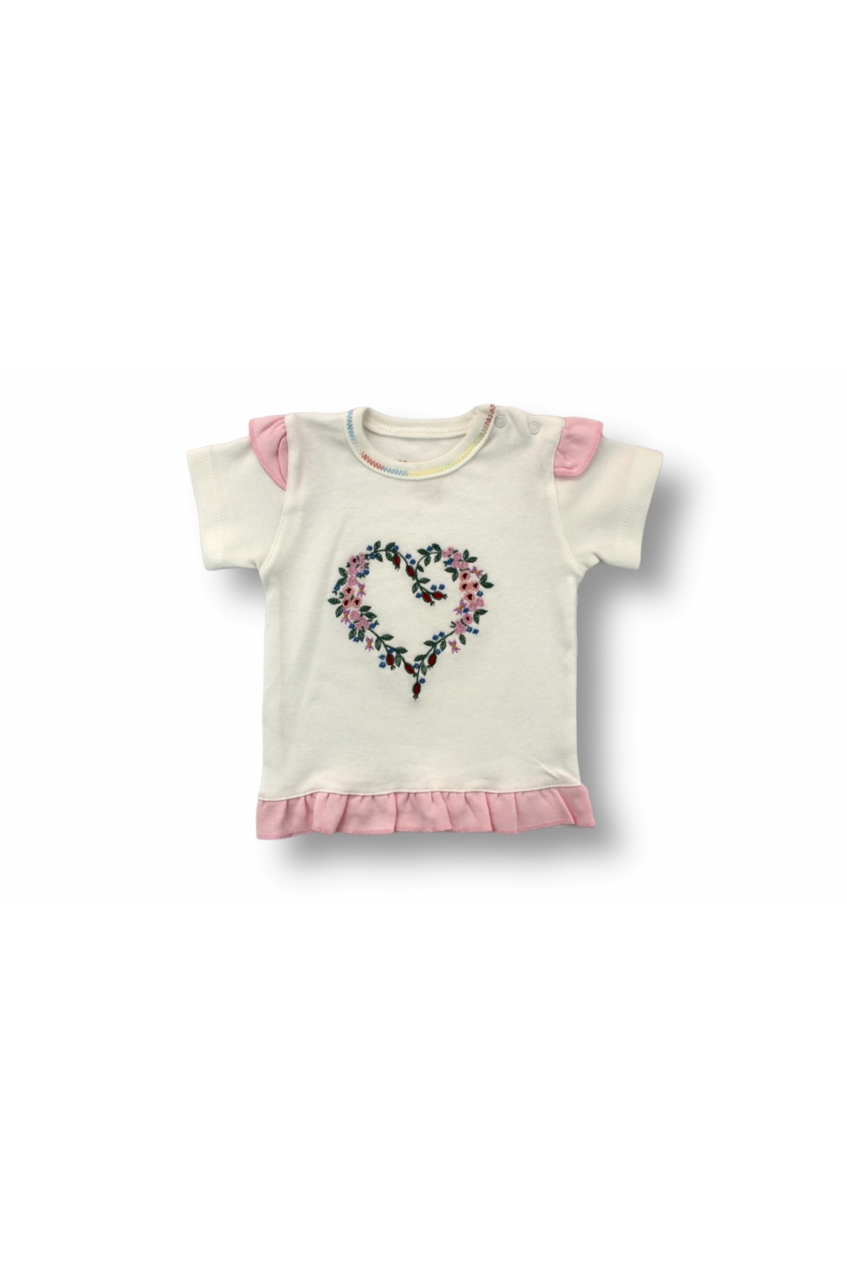 3-6 6-9 9-12 Months 3-Piece Baby Girl Set with Anatolian Flower Embroidery Hat and Short Sleeve Sweat