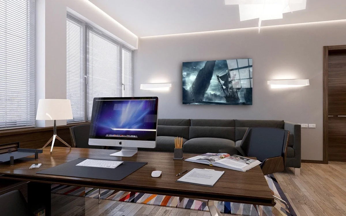 The printing of the glass painting is in the form of direct printing on the back surface of the glass. In this way, the printing remains behind the glass and you will see the high printing quality with the elegance of the glass.