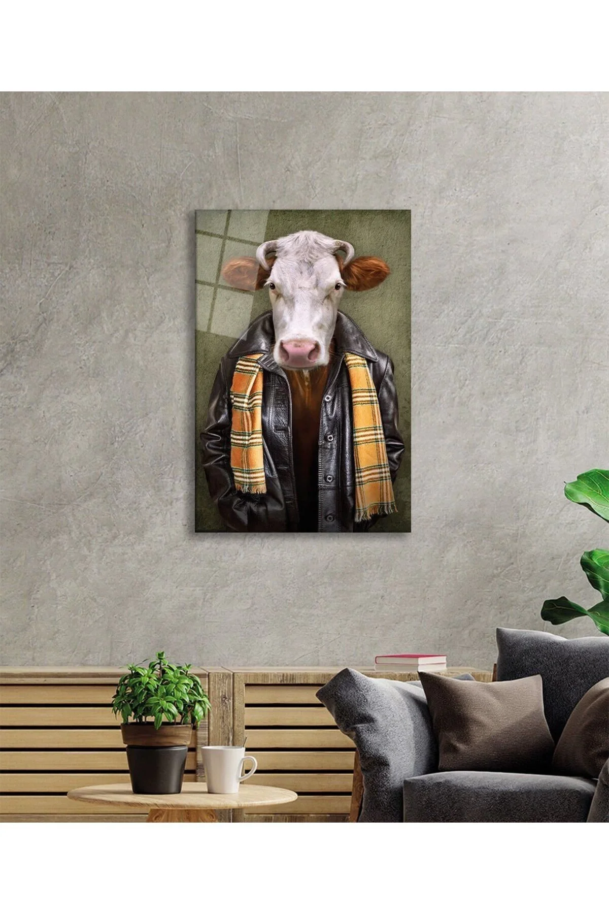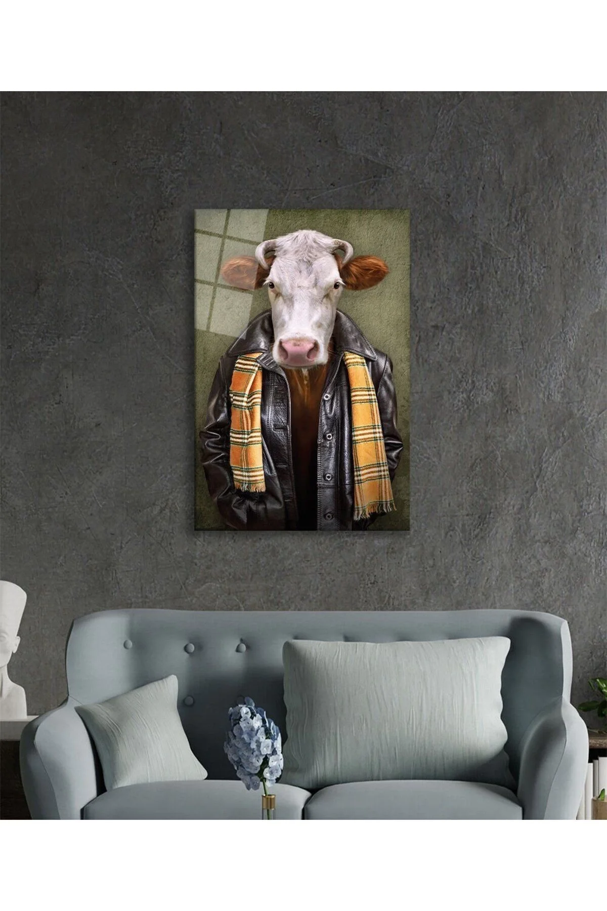 Cow Animal Portrait with Human Body Glass Painting, Home And Office Wall Decor, Large Glass Painting