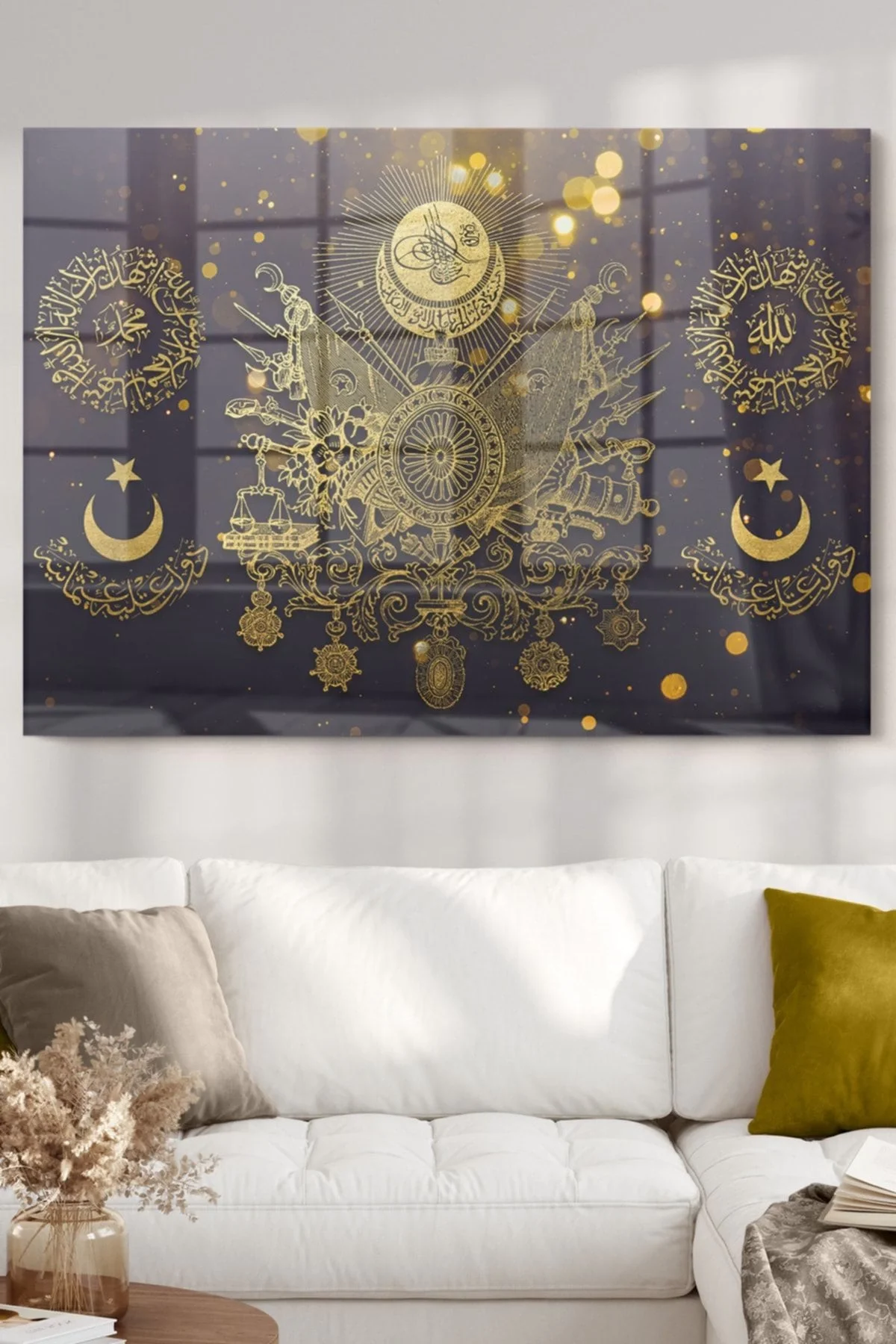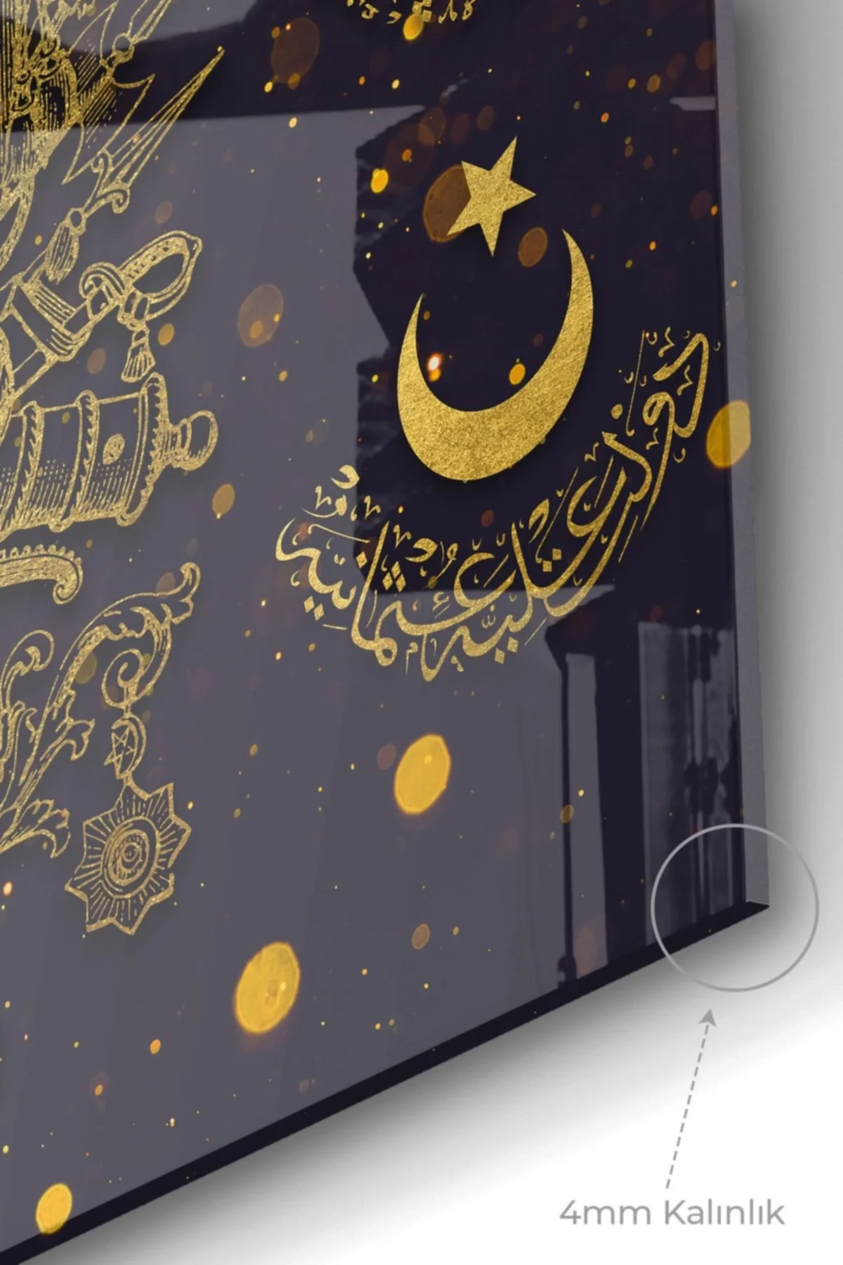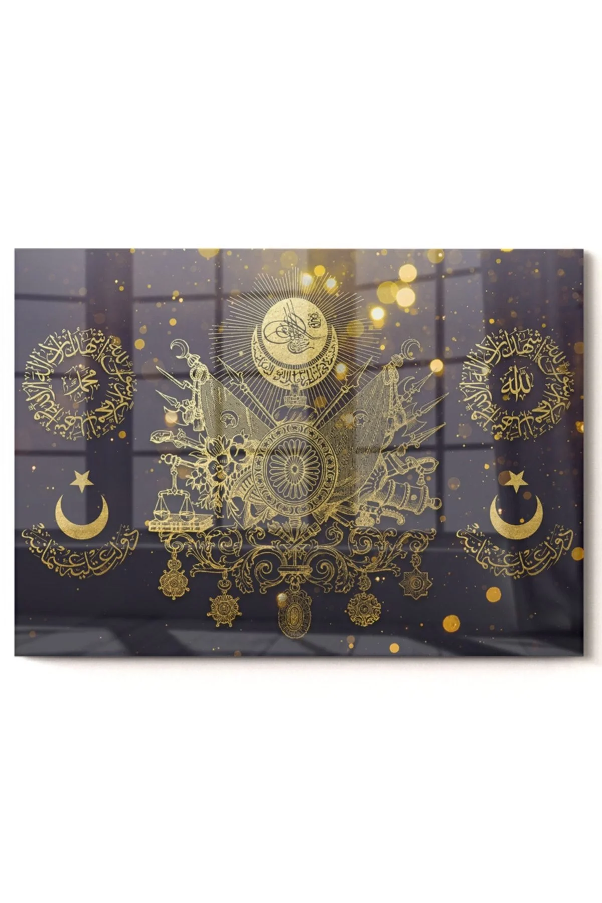 Gold Detailed Ottoman Tughra Allah Muhammed | Ottoman Themed Glass Painting | 50x70cm