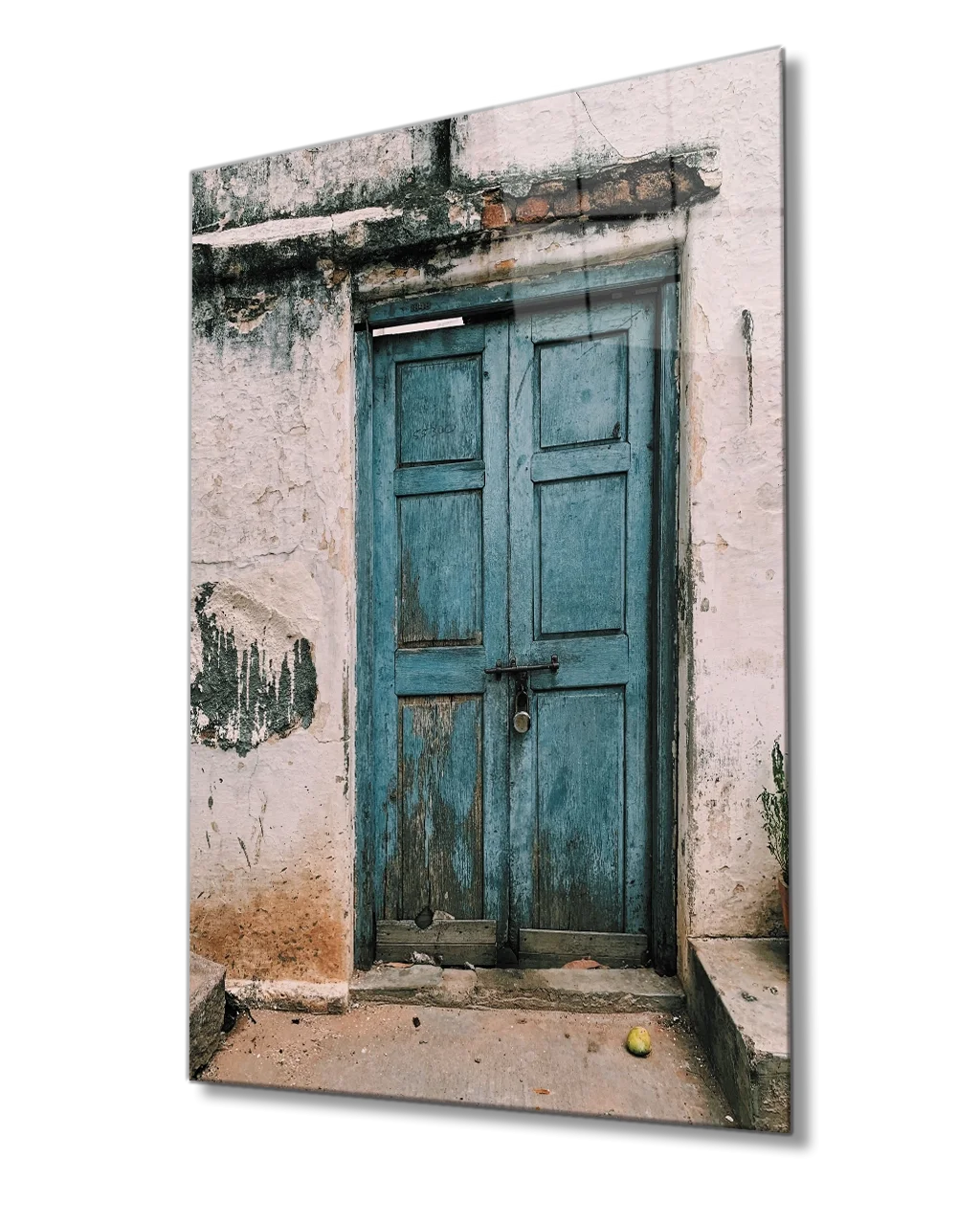 TEKNOO- Vertical Glass Painting with Blue Wooden Door Image