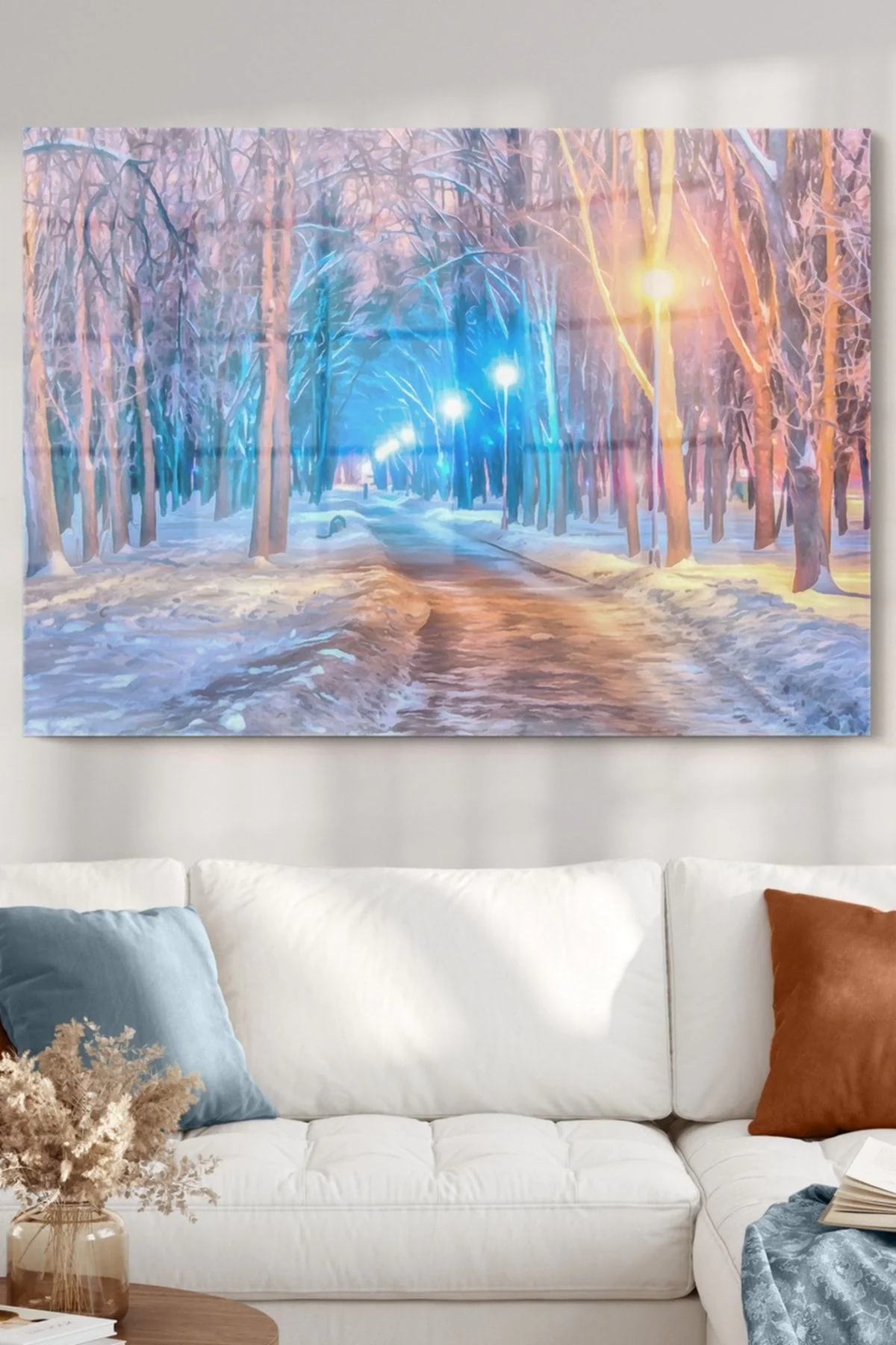 Winter And Walking Path Themed | Nature Themed Glass Painting | 50x70cm